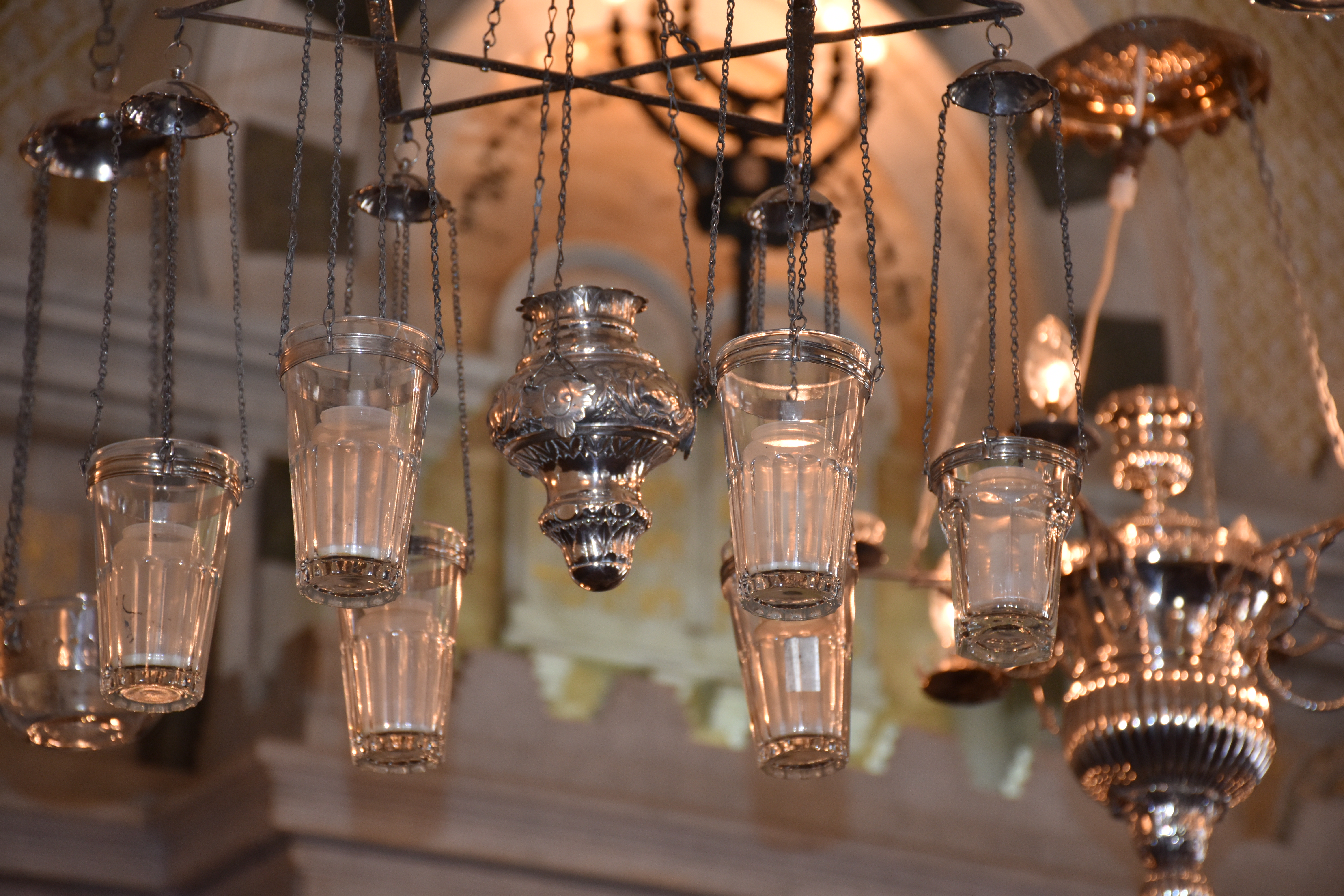Ner Tamid and lights in synagogue in Gibraltar (photo: FirstOneThrough)