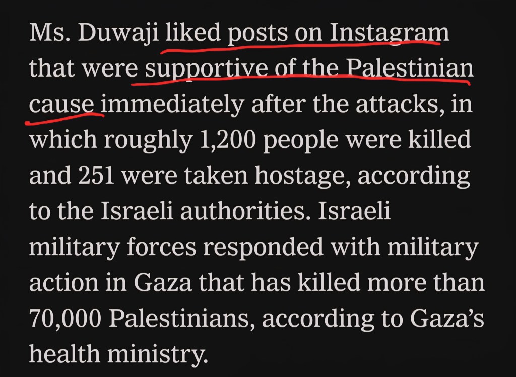 Calling appreciation of those posts “support for the Palestinian cause” launders the meaning of the act. The language turns approval of atrocities into activism. And it did the spin repeatedly.