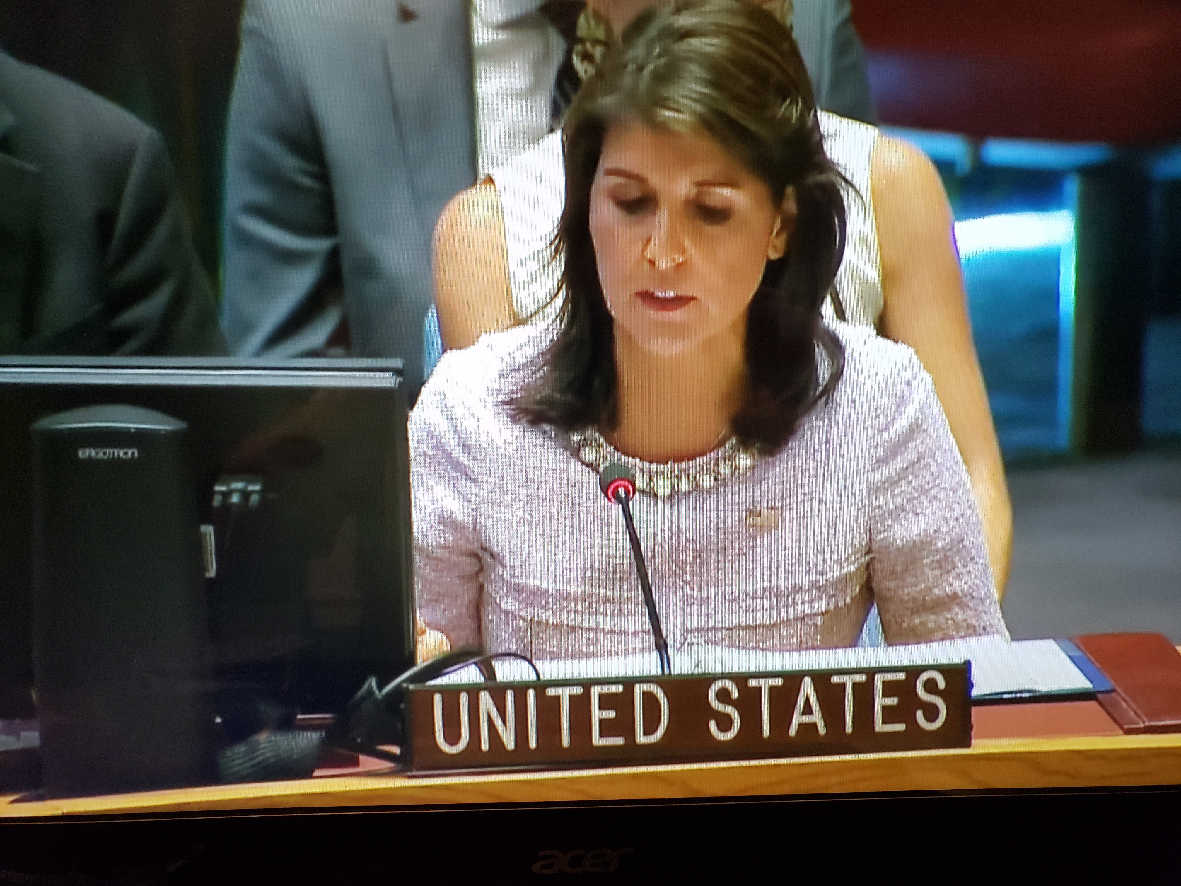 US Ambassador to the UN Nikki Haley addressing the UN Security Council