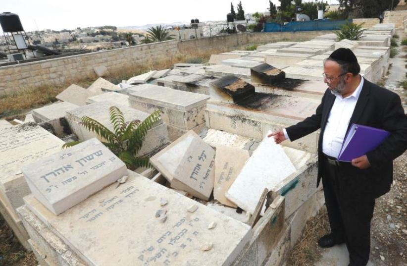 The cemetery is frequently vandalized. In 1990, Arabs broke over ten tombstones, including that of Prime Minister Benjamin Netanyahu’s grandfather. In 2015, during the Palestinian Arab stabbing rampages, vandals smashed numerous tombstones at the site.