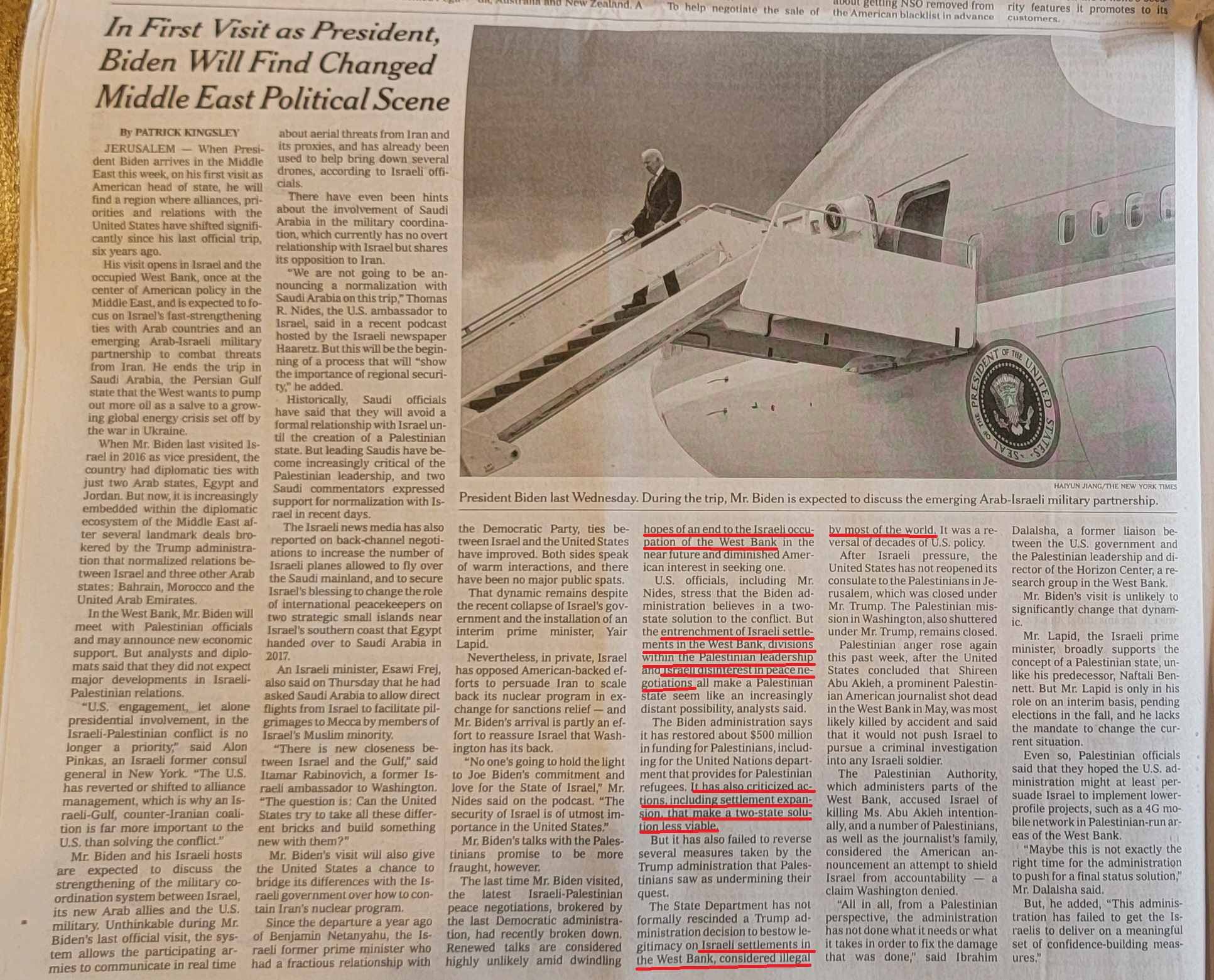The New York Times is obsessed with telling the world the false narrative that Palestinian Arabs are helpless victims in the Arab-Israeli conflict. It pushed the fake story again, that Israel is solely responsible for Palestinian misery, ahead of US President Joe Biden’s visit to the region later this week.