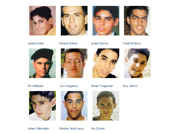 The eleven dead included: Assaf Avitan, 15, of Jerusalem; Michael Moshe Dahan, 21, of Jerusalem; Israel Ya’akov Danino, 17, of Jerusalem; Yosef El-Ezra, 18, of Jerusalem; Sgt. Nir Haftzadi, 19, of Jerusalem; Yuri (Yoni) Korganov, 20, of Ma’alei Adumim; Golan Turgeman, 15, of Jerusalem; Guy Vaknin, 19, of Jerusalem; Adam Weinstein, 14, of Givon Hahadasha; Moshe Yedid-Levy, 19, of Jerusalem; and Ido Cohen, 17, of Jerusalem. Roughly 180 others were injured, 17 seriously.