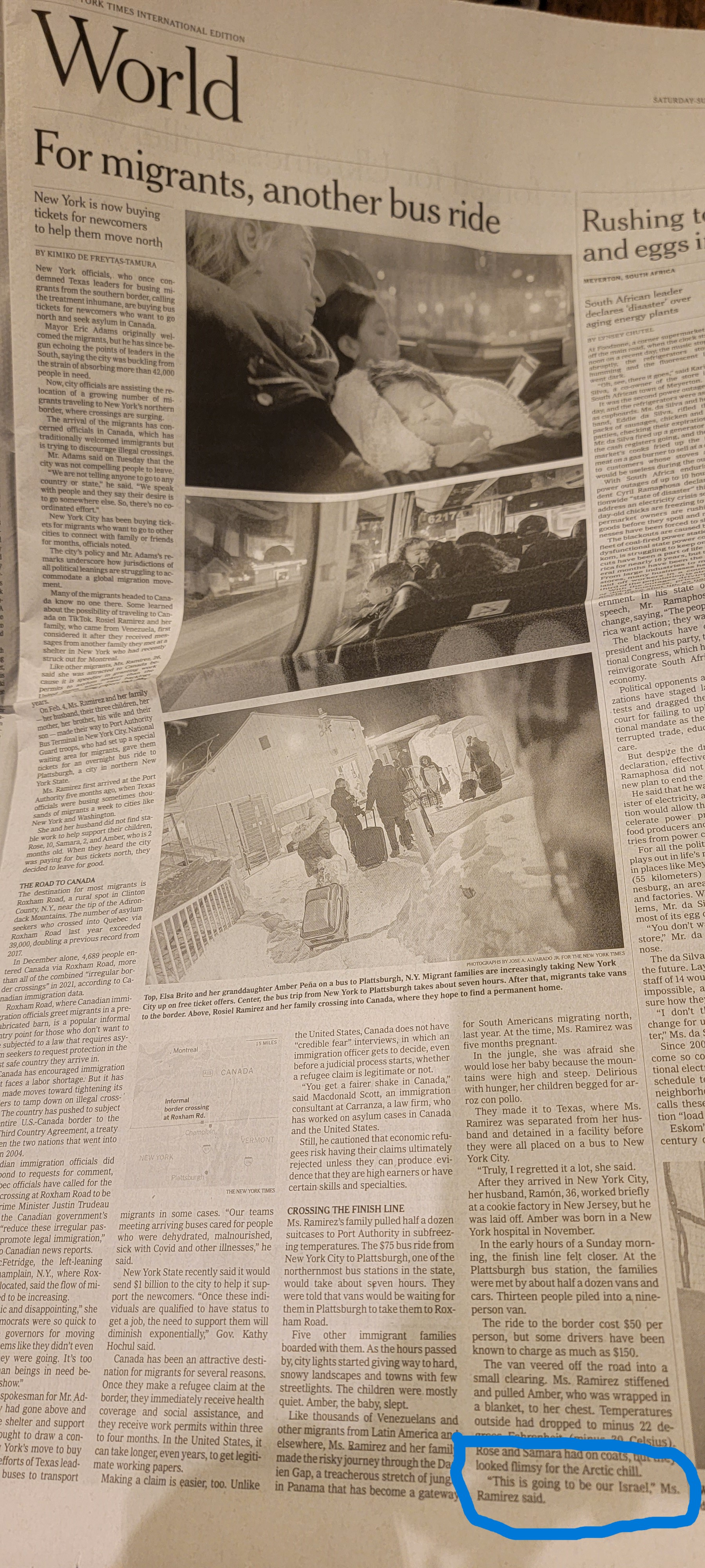 The New York Times wrote an article about the massive number of migrants from Latin America coming first into Texas, then New York, and ultimately bused to Canada. It relayed the scary journey in search of a better life.