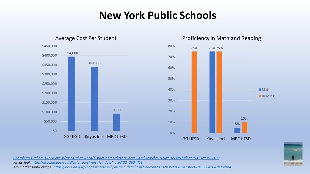 Despite the data, The New York Times performed an extensive analysis in which the secular paper concluded that Ultra-Orthodox Jews were sucking money out of the public school system and refusing to educate their students. The paper pushed for a thorough governmental review of the Jewish schools, but not any of the non-Jewish ones at the bottom of the WalletHub list. The Times did not devote any resources to examine why the Greenburgh-Graham UFSD spends much more per student than Kiryas Joel.