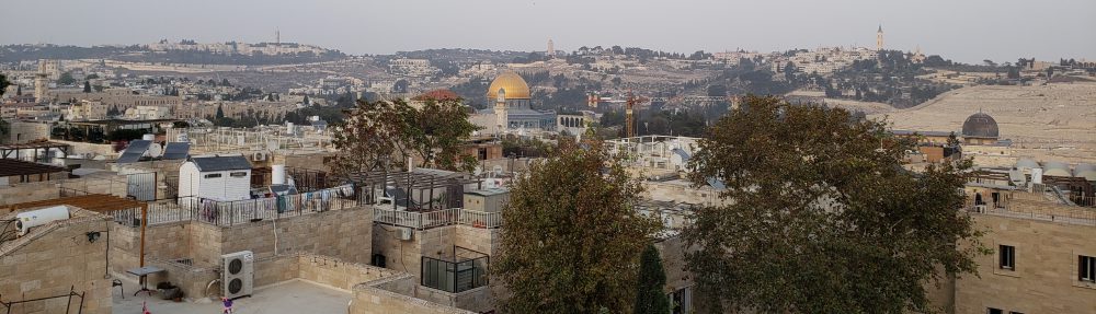 The Jewish Temple Mount in the Old City of Jerusalem from the roof of the Hurva Synagogue (photo: First One Through)