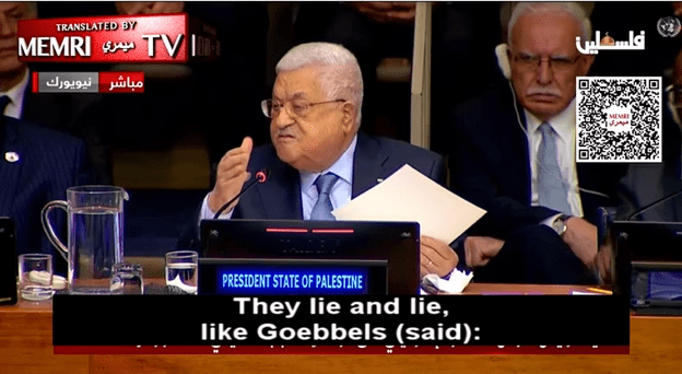 Abbas called the Jews a bunch of liars – on par with Nazi Germany’s propagandist Joseph Goebbels, who was instrumental in the genocide of European Jewry.