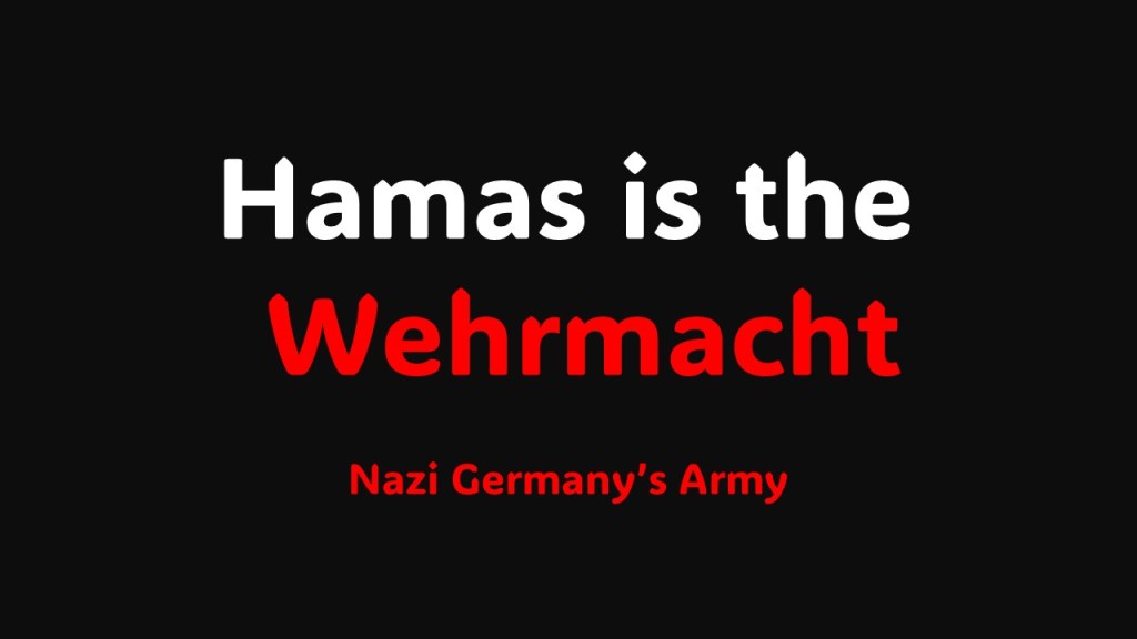 Unfortunately, Hamas is not like ISIS. It is the Palestinian army, much like the Wehrmacht was the army of Nazi Germany.