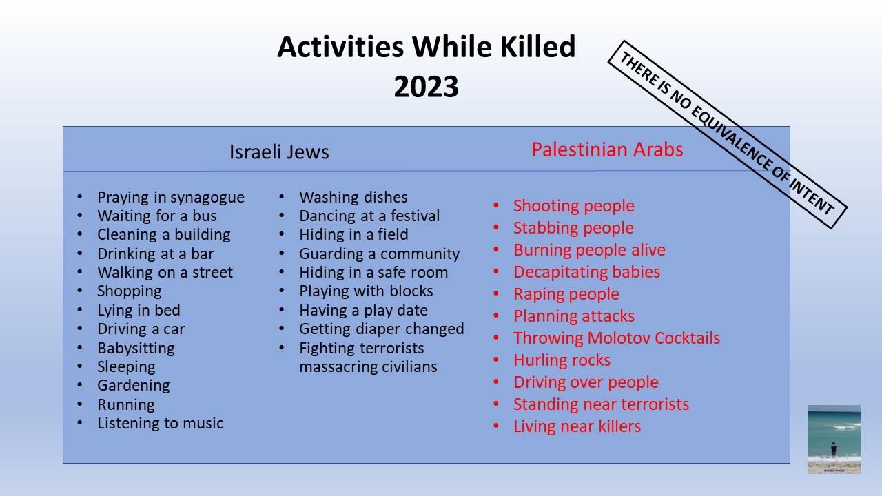 Israel makes efforts to minimize the loss of life of Arab civilians during such conflicts based on inside intelligence about where terrorists are located. However, based on the colossal failure of Israeli intelligence to foresee the October 7 massacre, it is doubtful that Israel’s operatives can be relied upon to pinpoint the terrorists.
