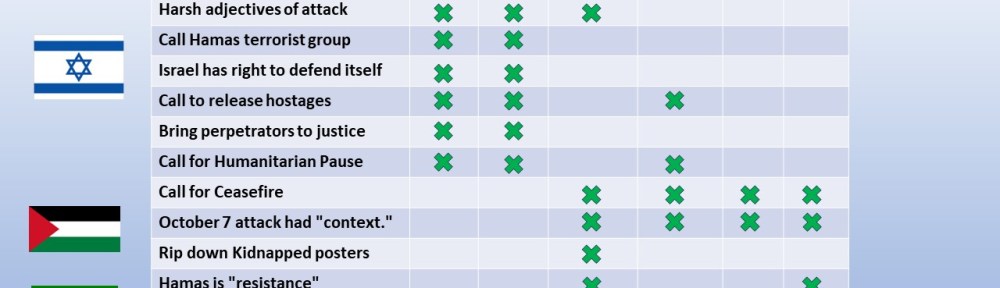 Pro-Israeli statements blend into pro-Palestinian statements when addressing Israel’s response to the attack. People who condemn violence might want all attacks to end and can hold both pro-Israel and pro-Palestinian statements concurrently. However, when people demonize Israel and support Hamas, the break in the preference becomes clear.