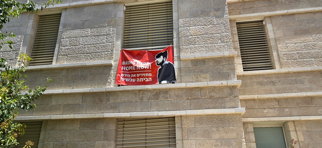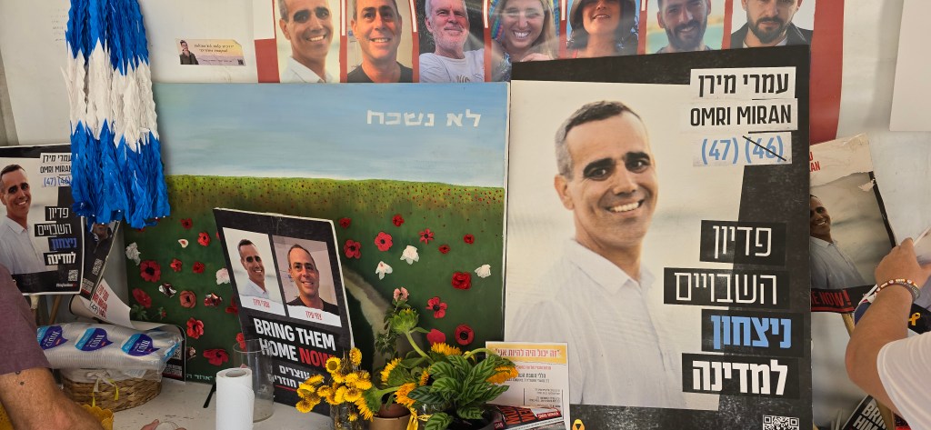 The first thing one sees upon arrival at the airport is a large sign “Bring them home now!” with sample dog tags showing the date October 7 when over 250 people from Israel – living and dead – were seized by Palestinian Arabs and hauled into Gaza.