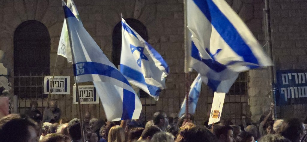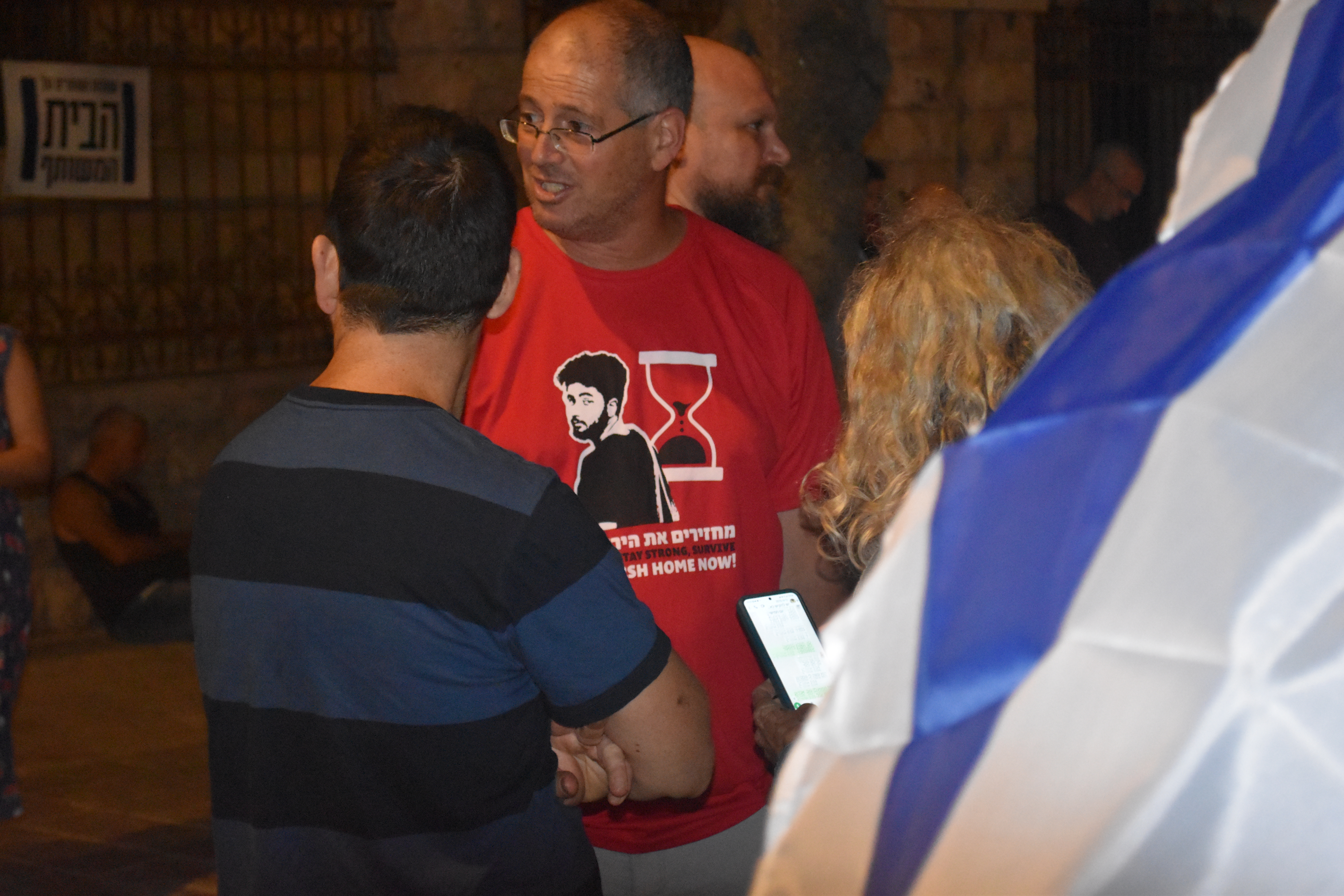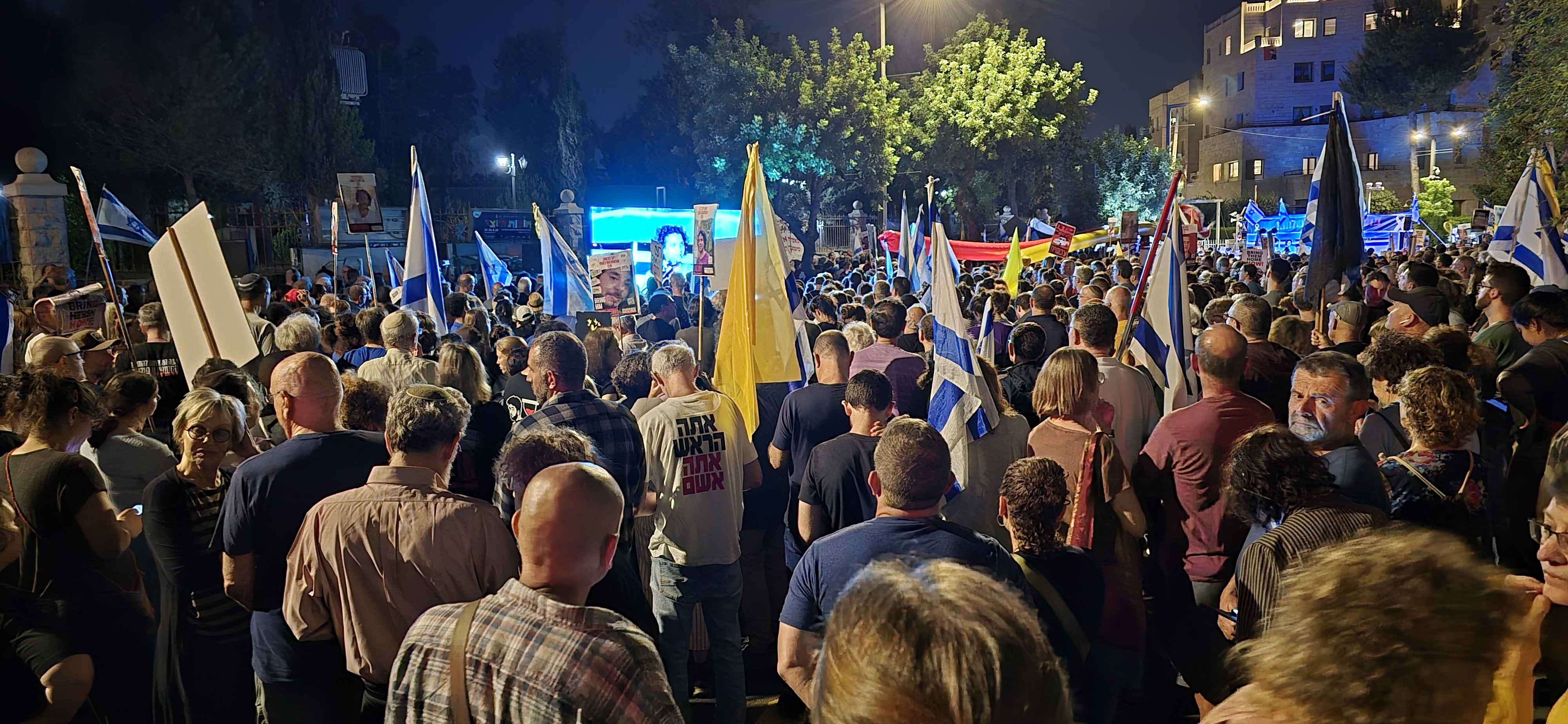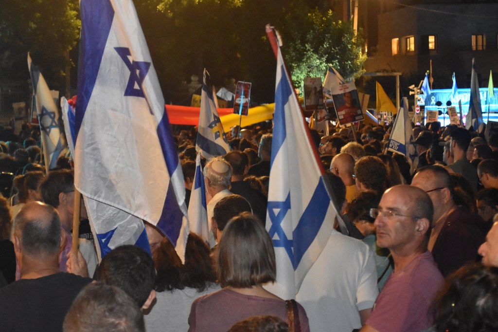 The Saturday night protest near the prime minister’s house in Jerusalem was not shrill and it seemed like the the crowd was worn out from many months of little progress.