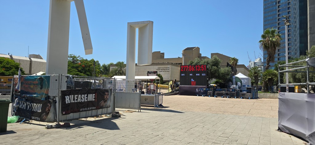 Outside the Tel Aviv Museum is Hostage Square, an encampment of families and friends who sit in shelters to talk to people about the abducted amidst a range of emotional tributes and installations. Most of the people try to avoid talking about politics or the war, and are solely focused on the innocent people ripped from their homes and regular lives.