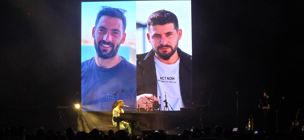 I was fortunate to attend a Hanan Ben Ari concert in the Sultan’s Pool right outside the Old City of Jerusalem. The stage was illuminated by the number of days that hostages were captive along with a yellow ribbon.