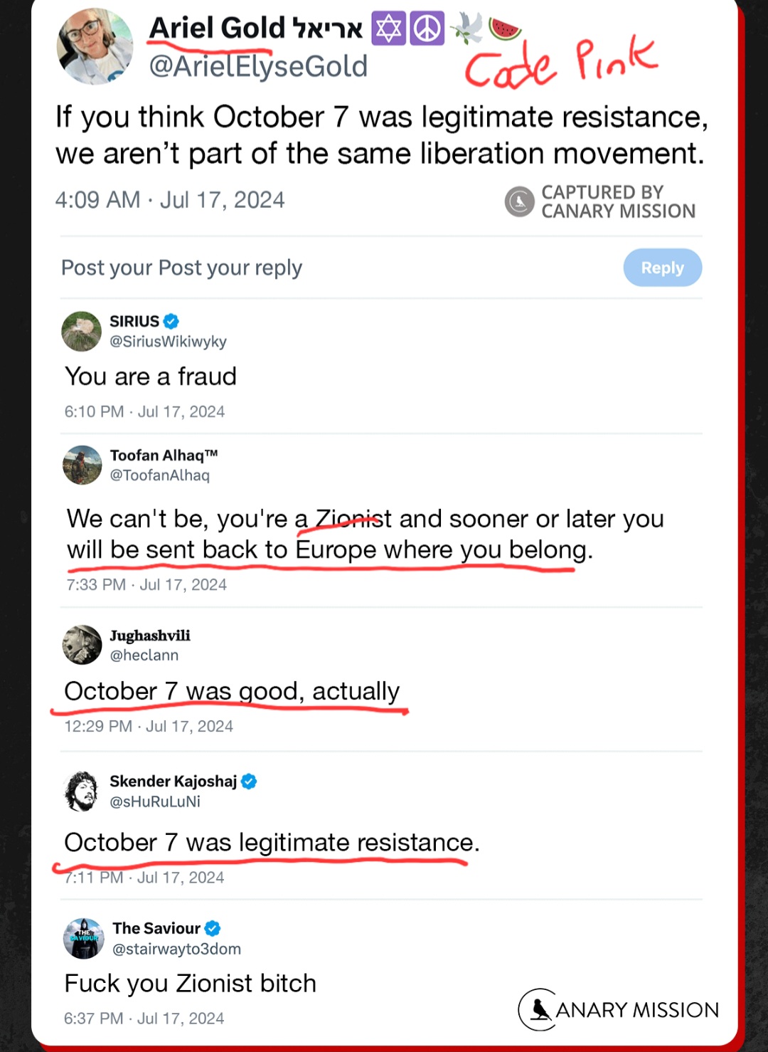 Even the anti-Zionist group Code Pink was appalled by the October 7 bloodlust of Palestinians. But not INN and other jihadists who seek the end of both Jews and the Jewish State.