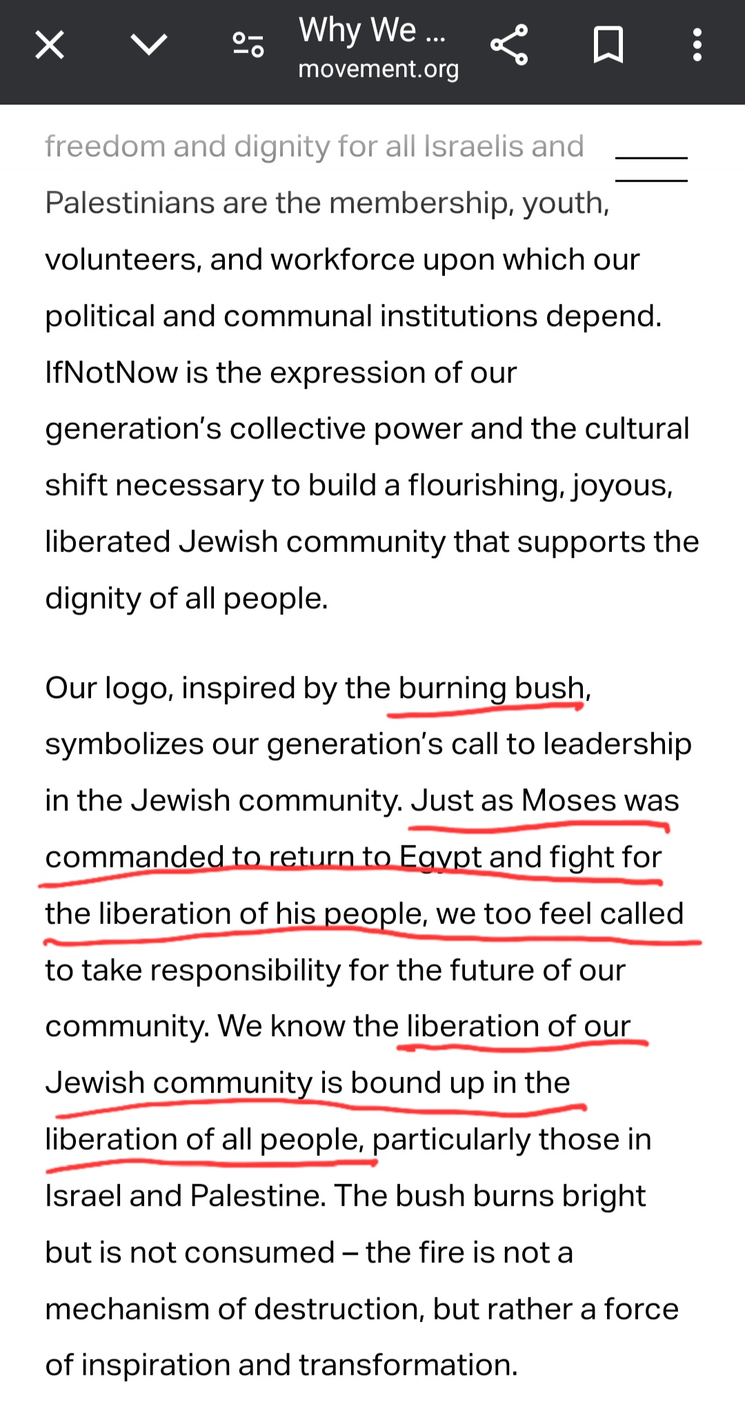 IfNotNow thesis is that in the face of white racist Jewish institutions protecting a white racist Jewish State, “mutual liberation” was needed. American Jews must fight and mimic movements such as BlackLivesMatter. It also wants to be like the Jewish prophet Moses, fighting for the liberation of his people and the “liberation of all people.”