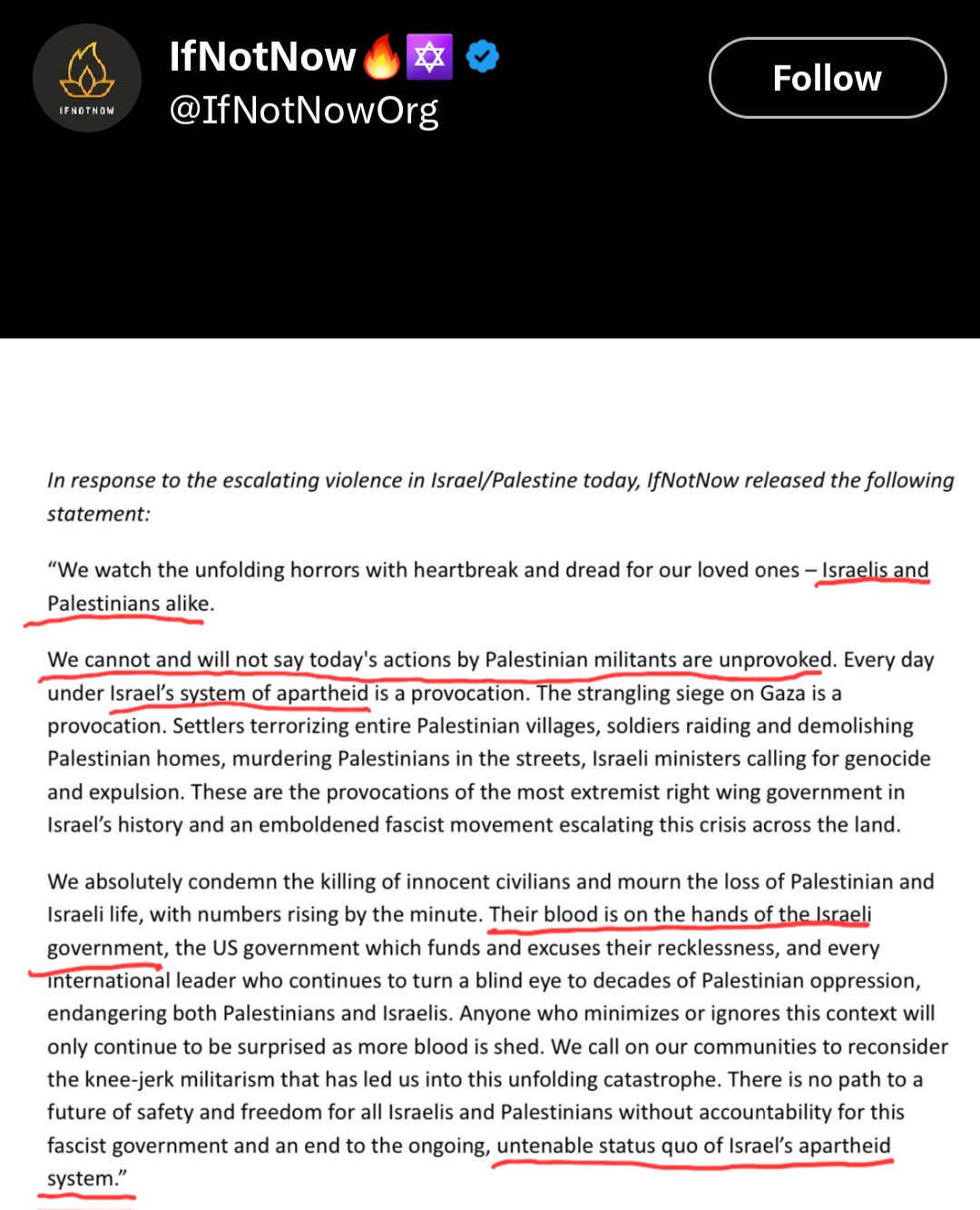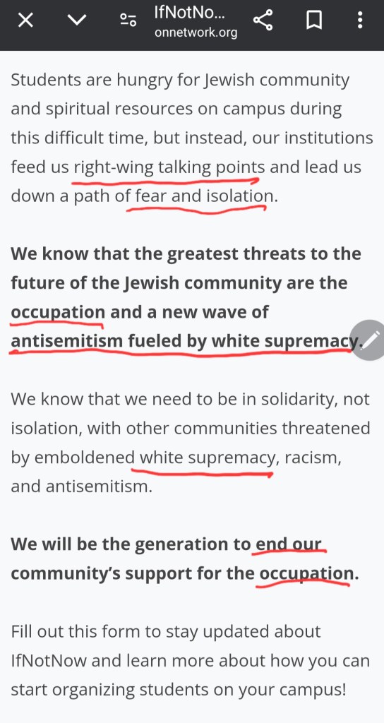 IfNotNow is part of the socialist-jihadi alliance which is becoming more active in politics and college campuses. INN wants Israeli Jews to shed their means of protection despite their lived experience. They similarly want white Jewish organizations to stop protecting white Jews in Israel and America to become a defenseless minority-minority which history has shown is easy fodder for attack.