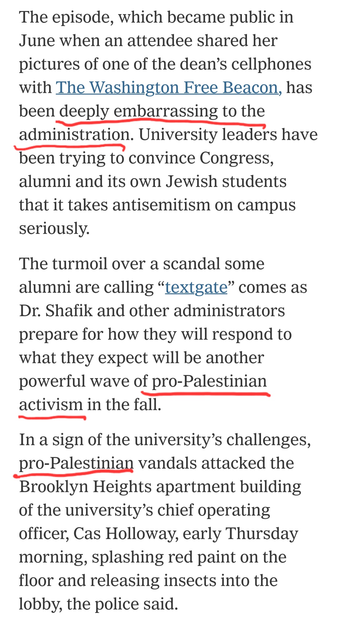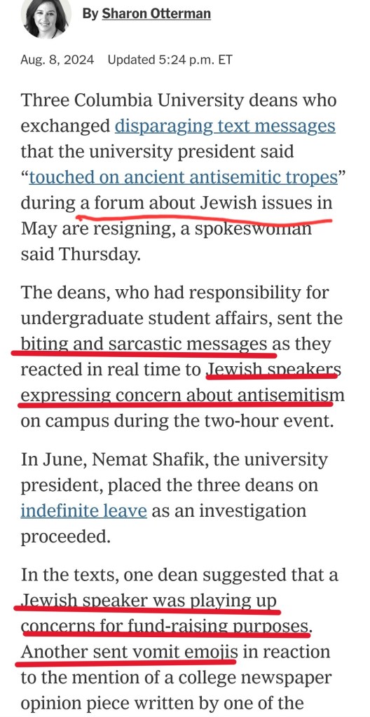 The Times headline wrote about “deans who sent insulting texts.” But the texts weren’t simply offhand “insulting”; they were antisemitic.