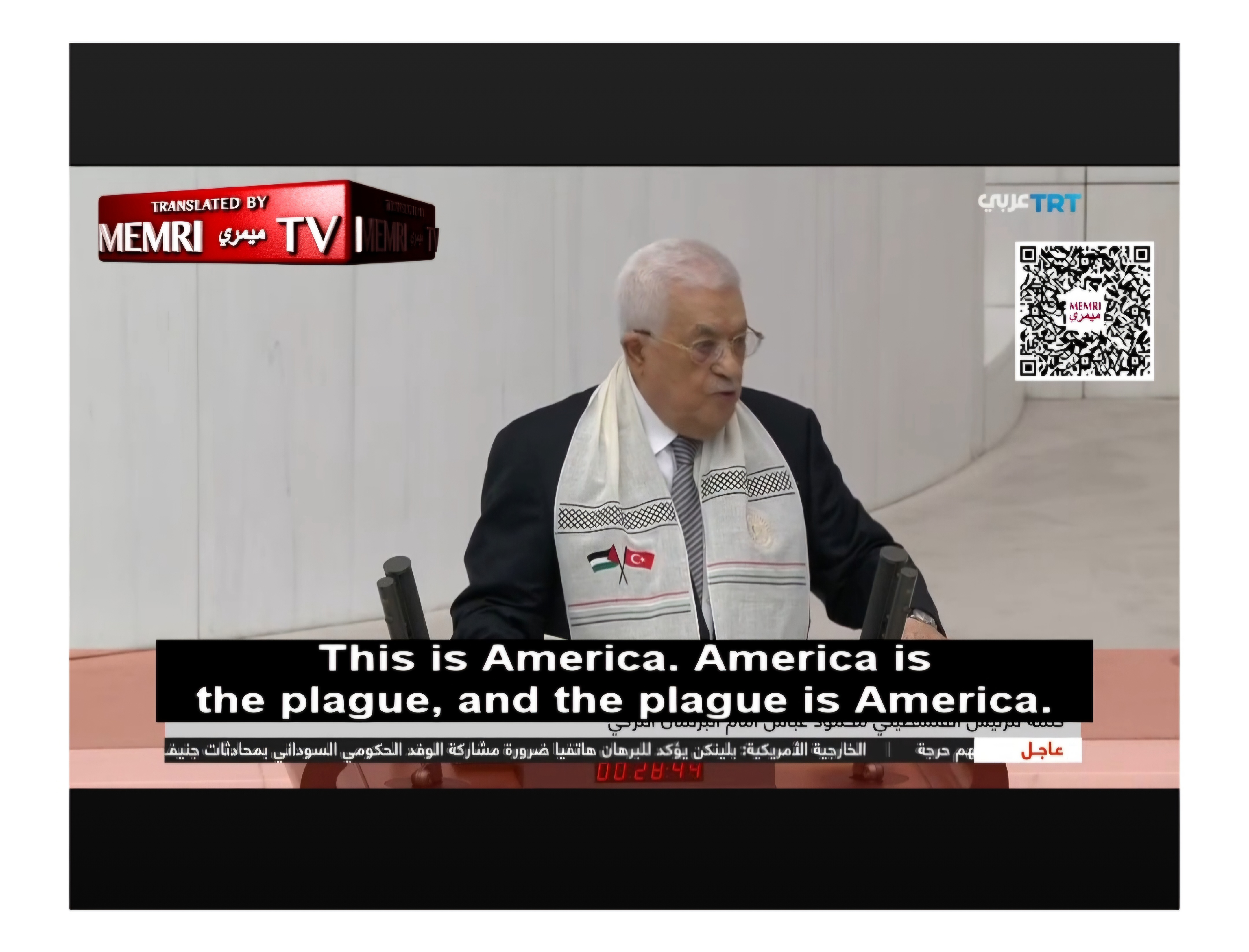 The supposedly “moderate” Holocaust-denier President Mahmoud Abbas of the Palestinian Authority addressed the Turkish government on August 15, 2024. He promised “sharia law: victory or martyrdom” in the war against the Jewish State, and cursed the United States, “America is the plague and the plague is America.”