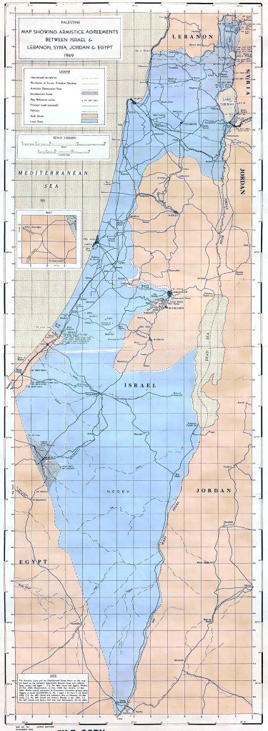 1949 Armistice Lines with Egyptian-controlled Gaza and Jordan’s illegally annexed western bank of the Jordan River