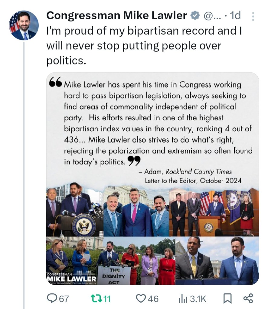 Vote for bipartisan Mike Lawler, a leader in Congress and fighter for New York.