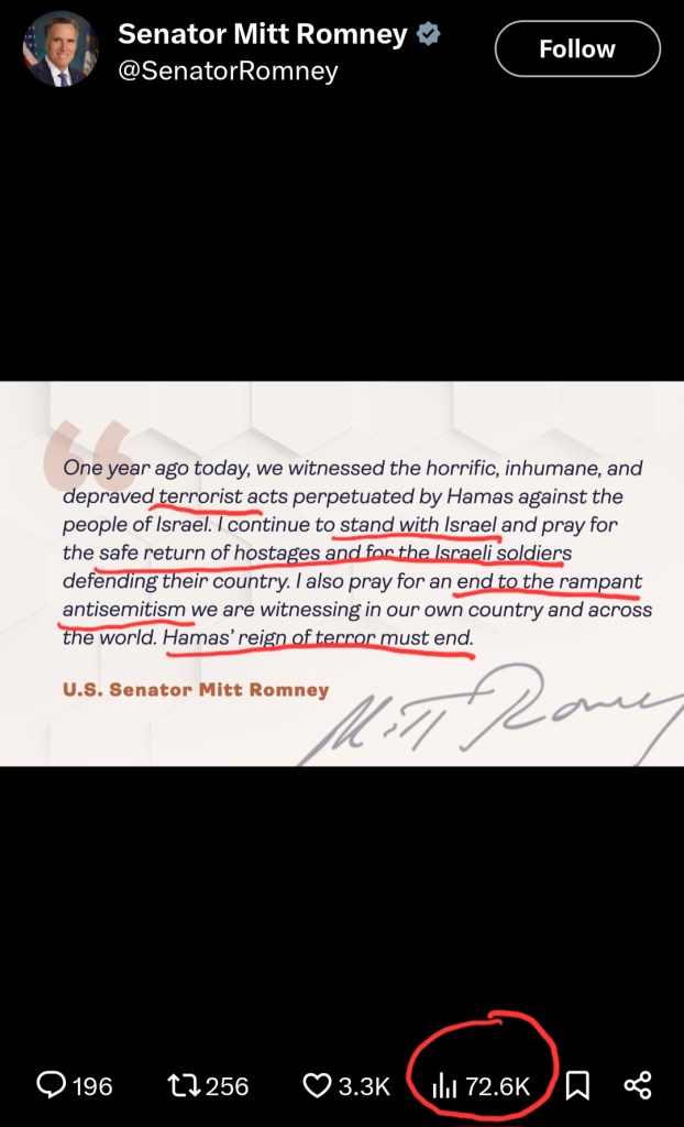 Even outgoing Senator Mitt Romney had more moral clarity – and more views – than Schumer. In a succinct statement Romney said he wanted to see an end to the terrorist group Hamas, that he stood with Israel, prayed for the hostages and Israeli soldiers and to end rampant antisemitism.