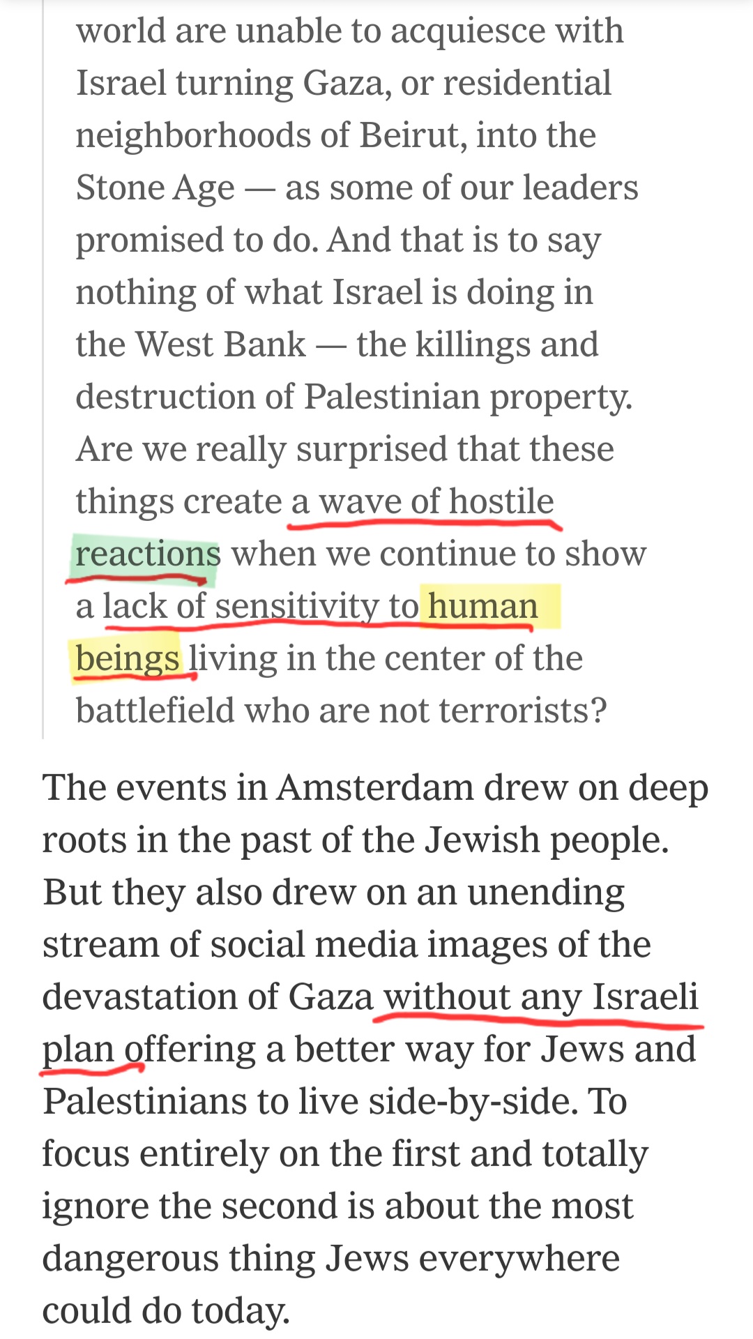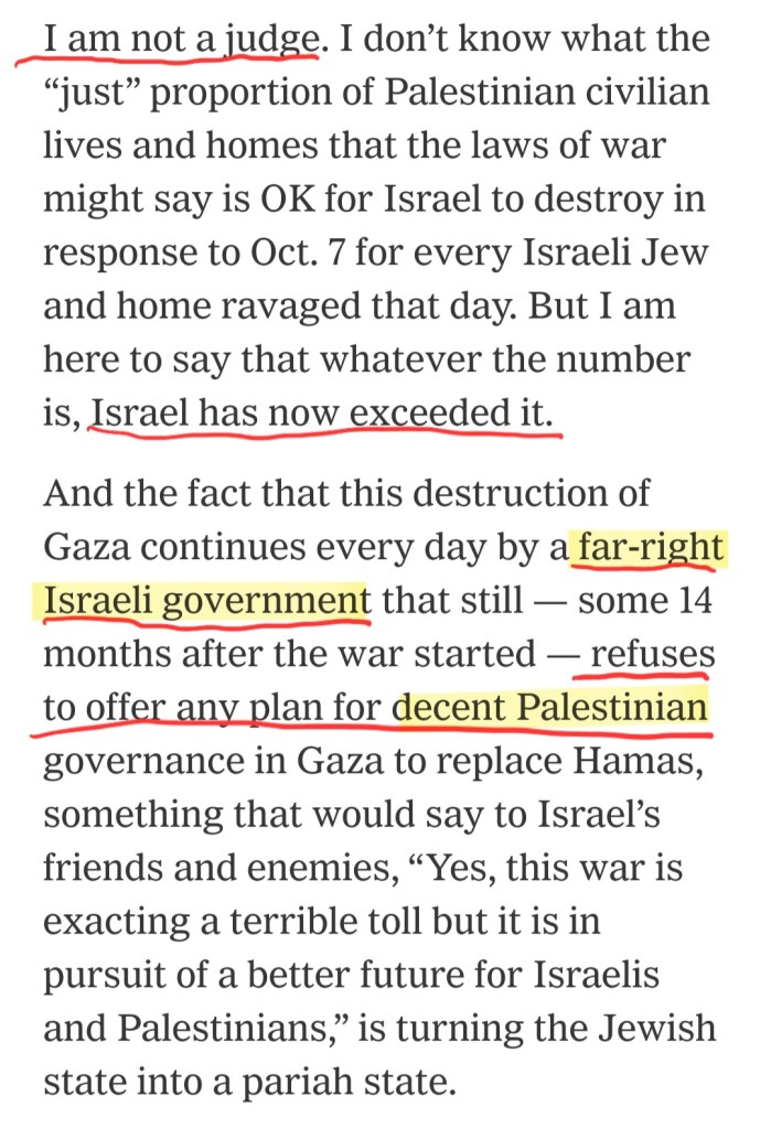 know the International Criminal Court has wrongly accused them of a “genocide.” They are actively engaged in a defensive war they didn’t start, don’t want, and would end immediately if the hostages were released and the terrorists would surrender. They know the steps they take to minimize civilian casualties as they prosecute a war against an enemy intent on maximizing civilian casualties, with the lowest civilian-to-combatant ratio in urban warfare.