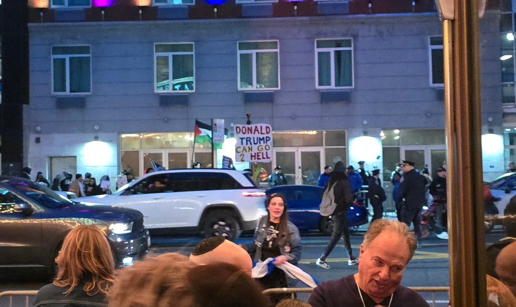 Anti-Israel protestors yell at Jews going to concert at Brooklyn, March 30, 2025 (photo: First One Through)