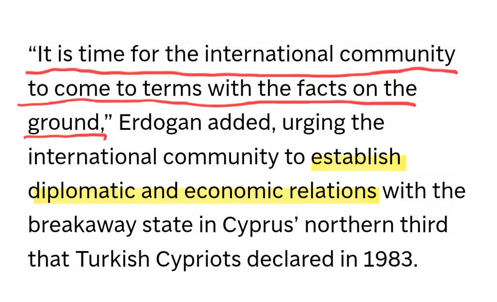 Turkey’s Erdogan stresses “facts on the ground”… for Cyprus