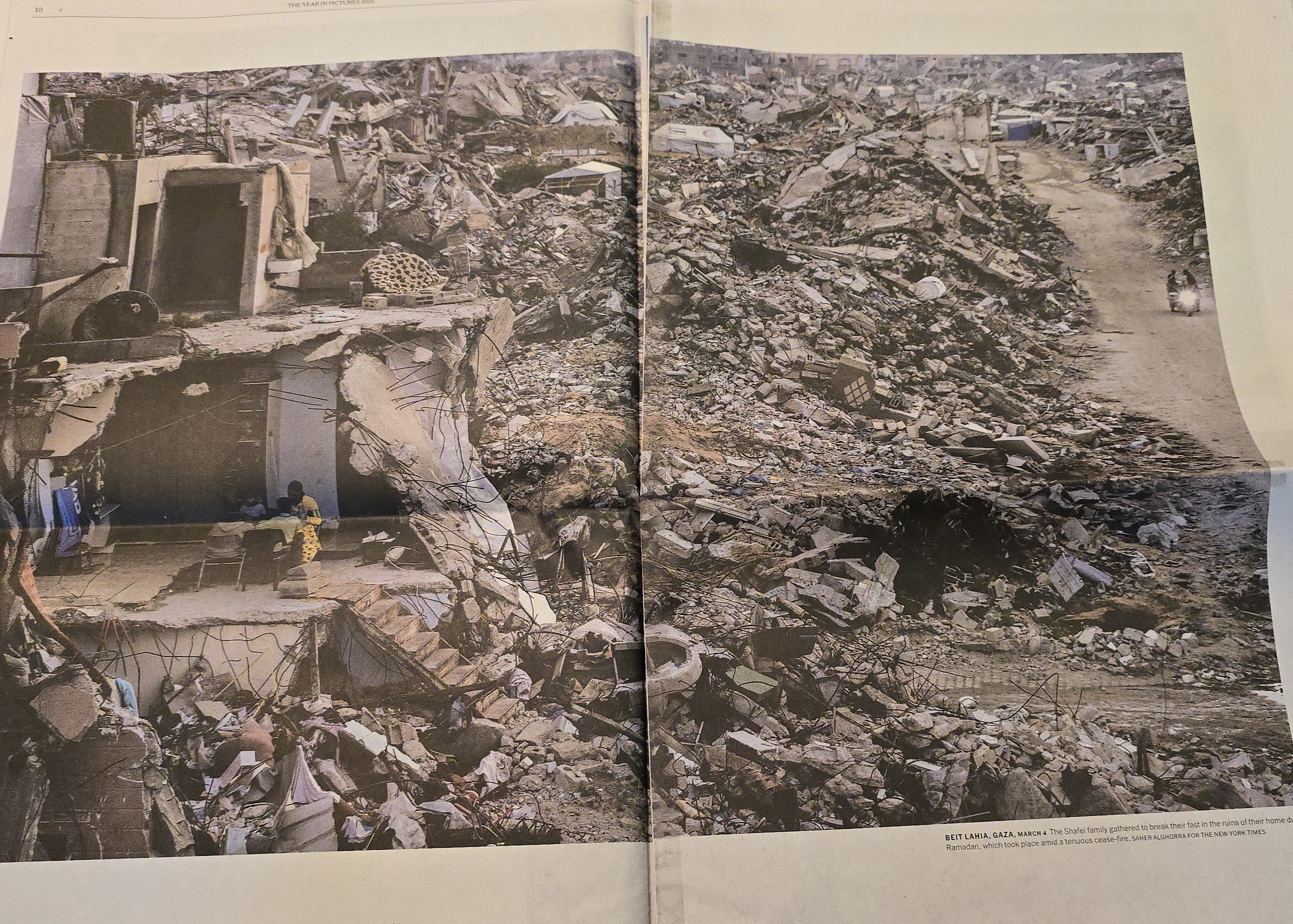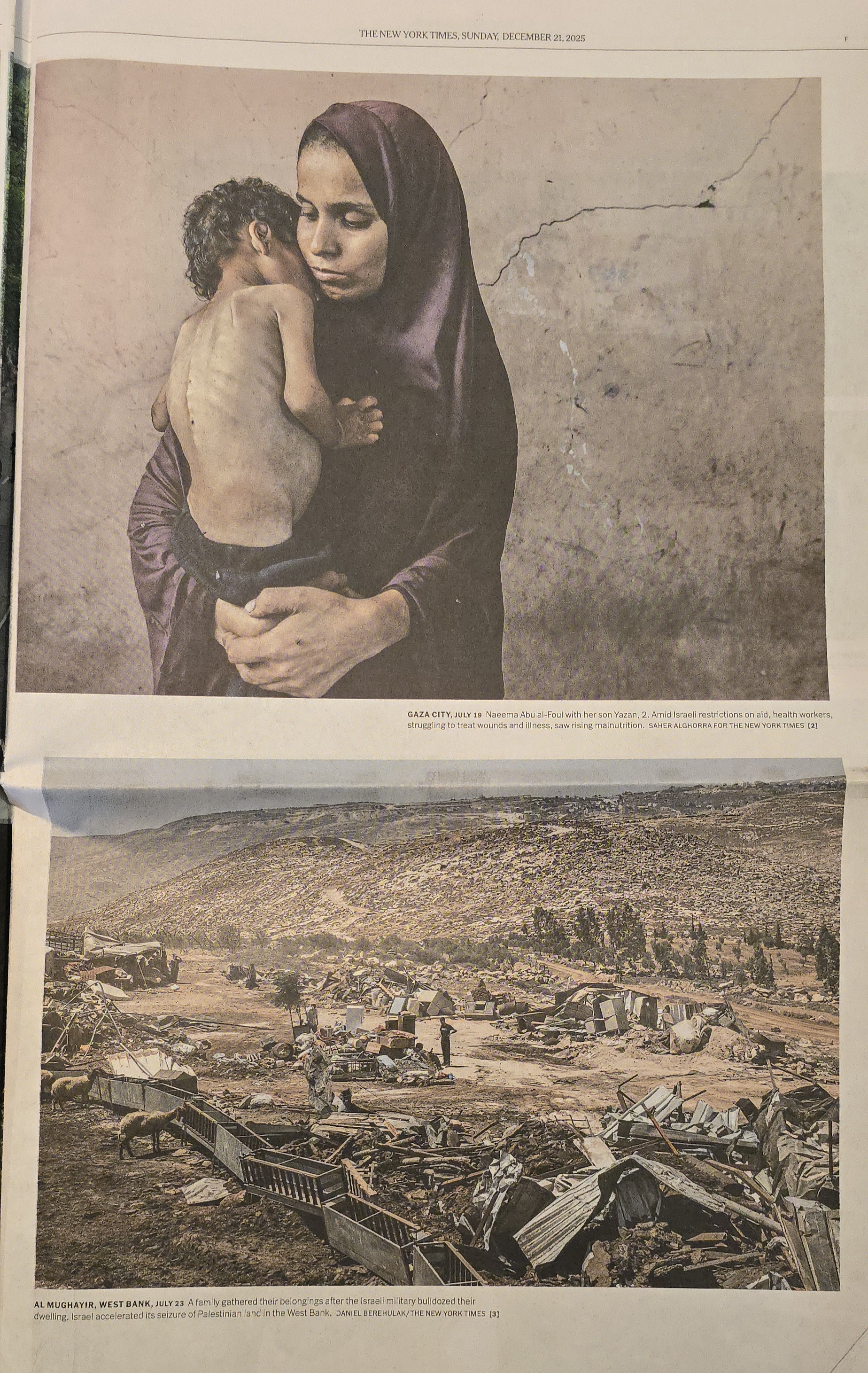 That is why the ritualized outrage of the West’s most powerful institutions now feels so hollow. Each year, The New York Times publishes its Year in Pictures, and the selection itself becomes an argument. In 2025, the year with the largest spike in antisemitism including several incidents of mass murder, there were no pictures of Jewish victims. Instead, page after page of Gaza: rubble, smoke, bloodied streets, dust-covered children. Destruction, repeated until it acquires the authority of inevitability. Israel appears only as force. Gaza appears only as suffering. Context is stripped away. Agency is erased. The camera becomes a verdict.