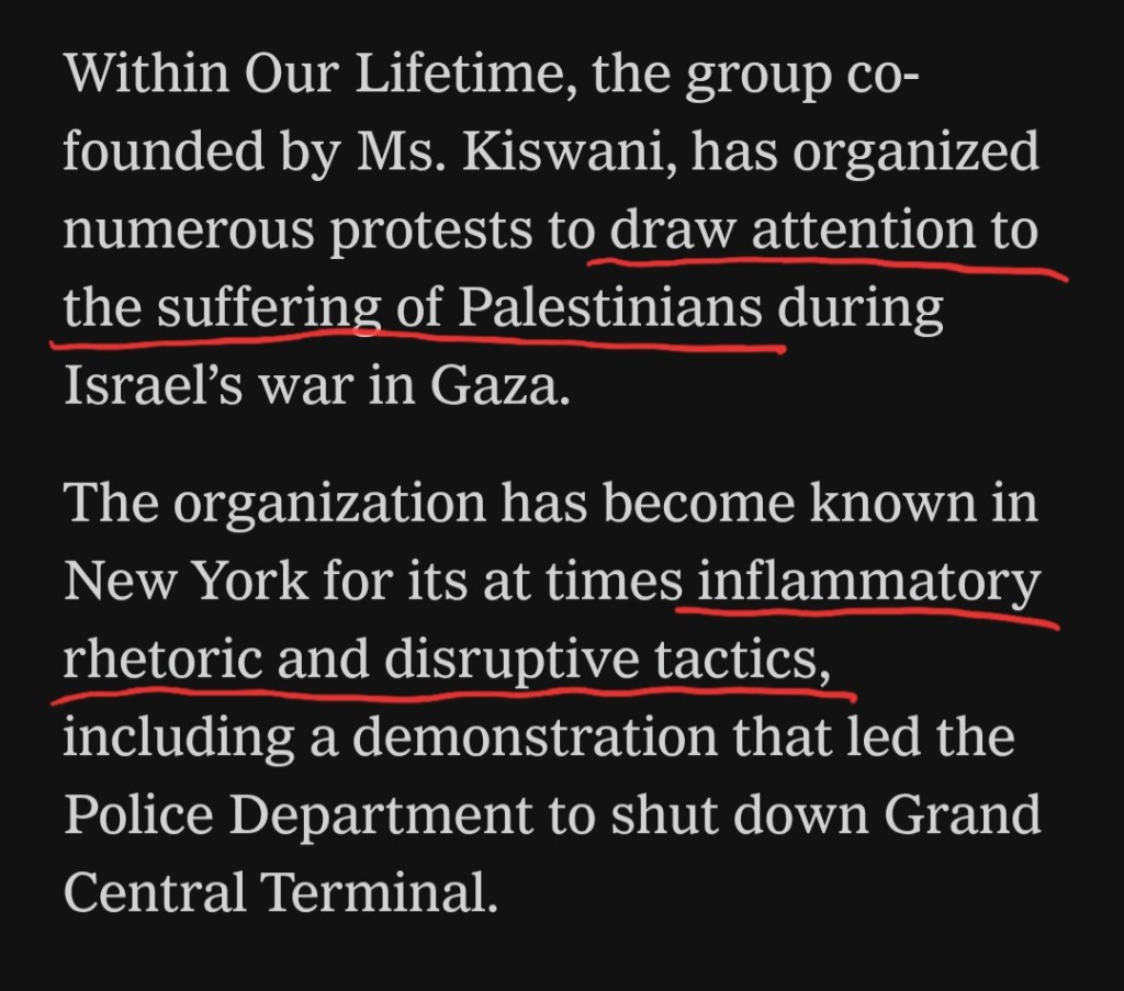 In short, Kiswani is a proud supporter of terrorism against Jews and American allies. Yet The New York Times made it appear that her stances were simply pro-Palestinian, which some members of the pro-Israel community found offensive.