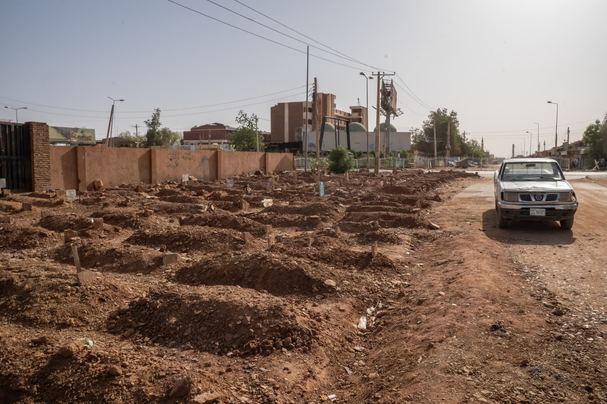 Limited travel and lack of burial space has led to burials expanding from existing graveyard perimeters to the city roads. (photo: Giles Clarke for OCHA)
