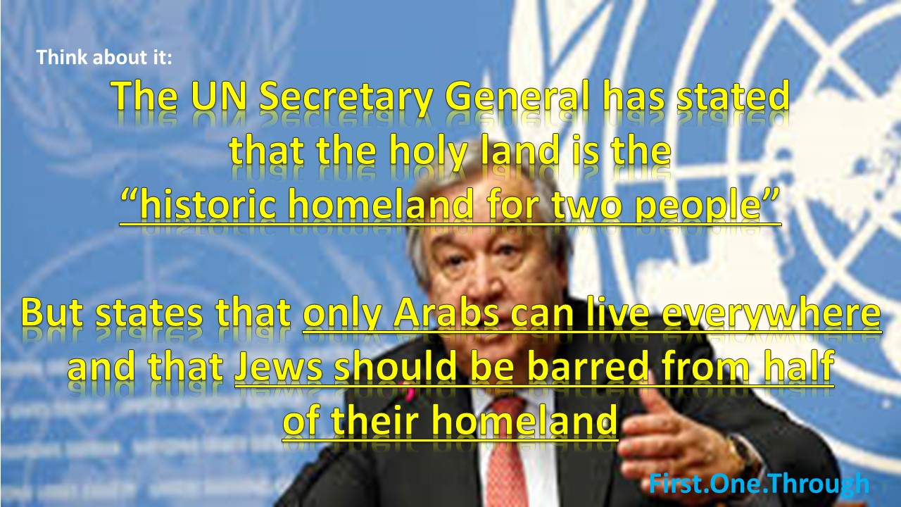 The new UNSG Guterres hypocrisy on the Jewish homeland.