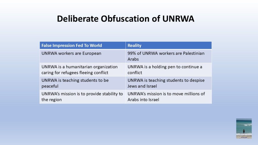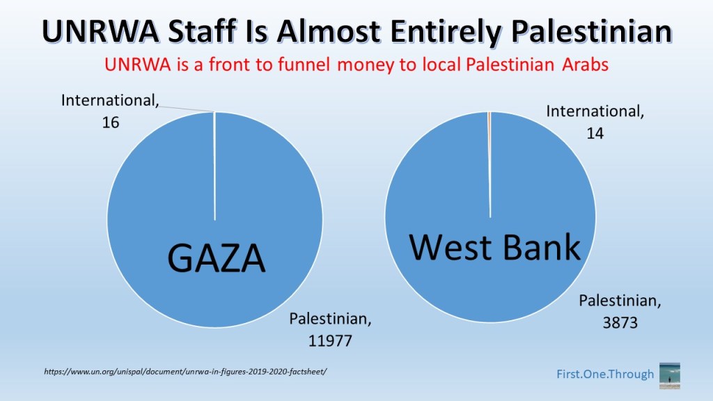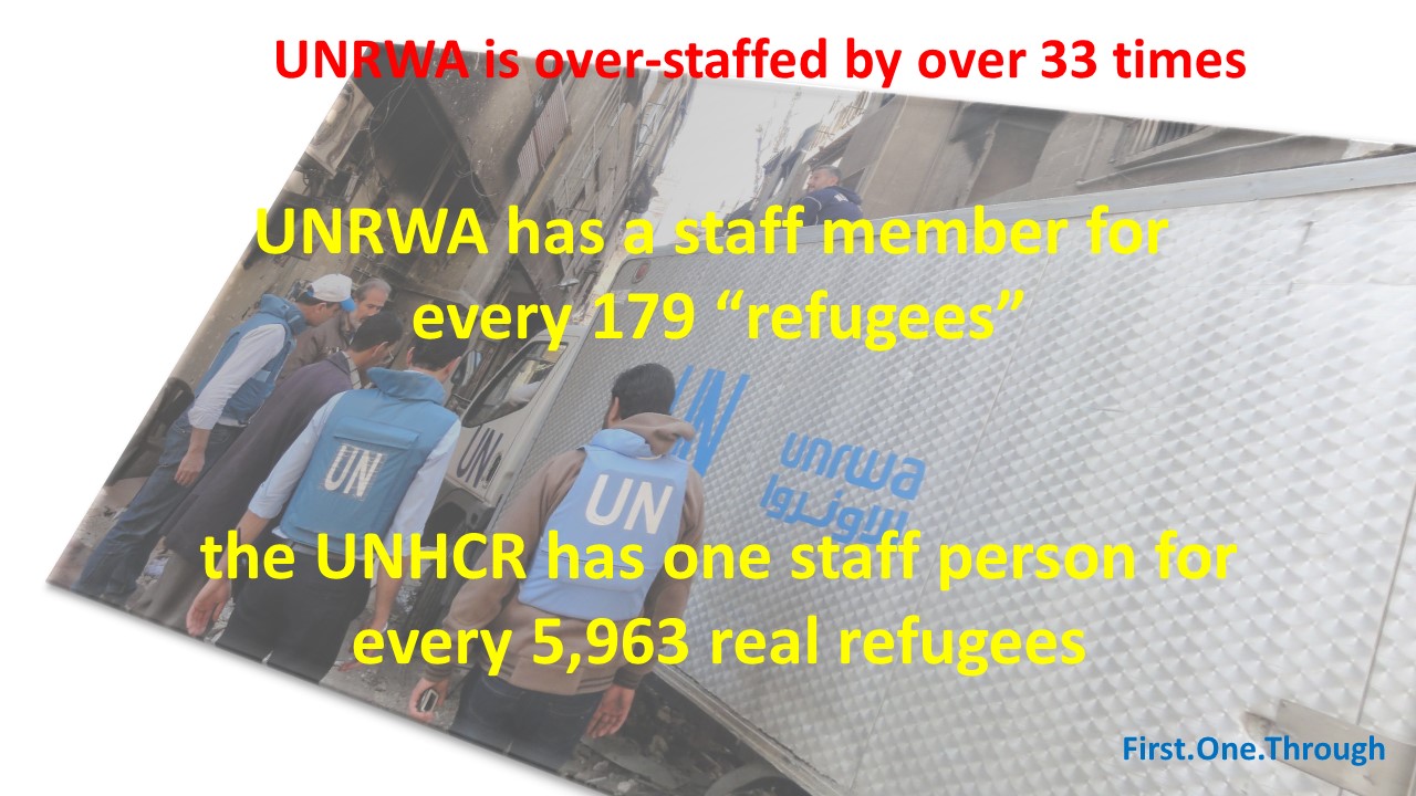 Think about it: There are now over 30,000 UNRWA employees and fewer than 30,000 Palestinian Arab refugees from the 1948 war.