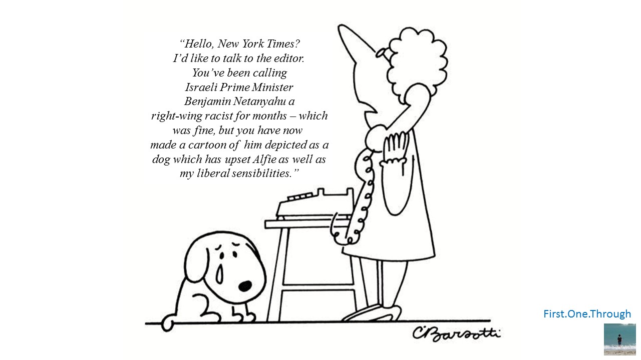 New York Times makes a cartoon of Netanyahu as a dog – as if that’s the only problem with their coverage of Israel.