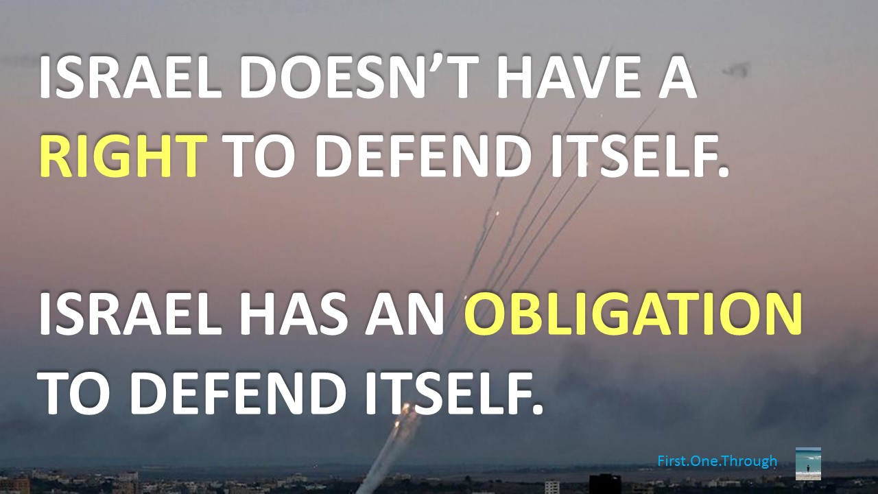 Politicians who say that Israel has a right to defend itself miss the point – every government in the world has a RESPONSIBILITY to defend its citizens.