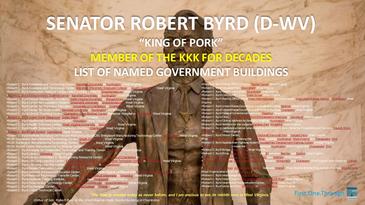 If Nancy Pelosi pushes Gov. Ralph Northam to resign for a single picture, I imagine she will push West Virginia to rename the 50+ buildings named after Sen. Robert Byrd (D-WV), a long-time member of the Ku Klux Klan.