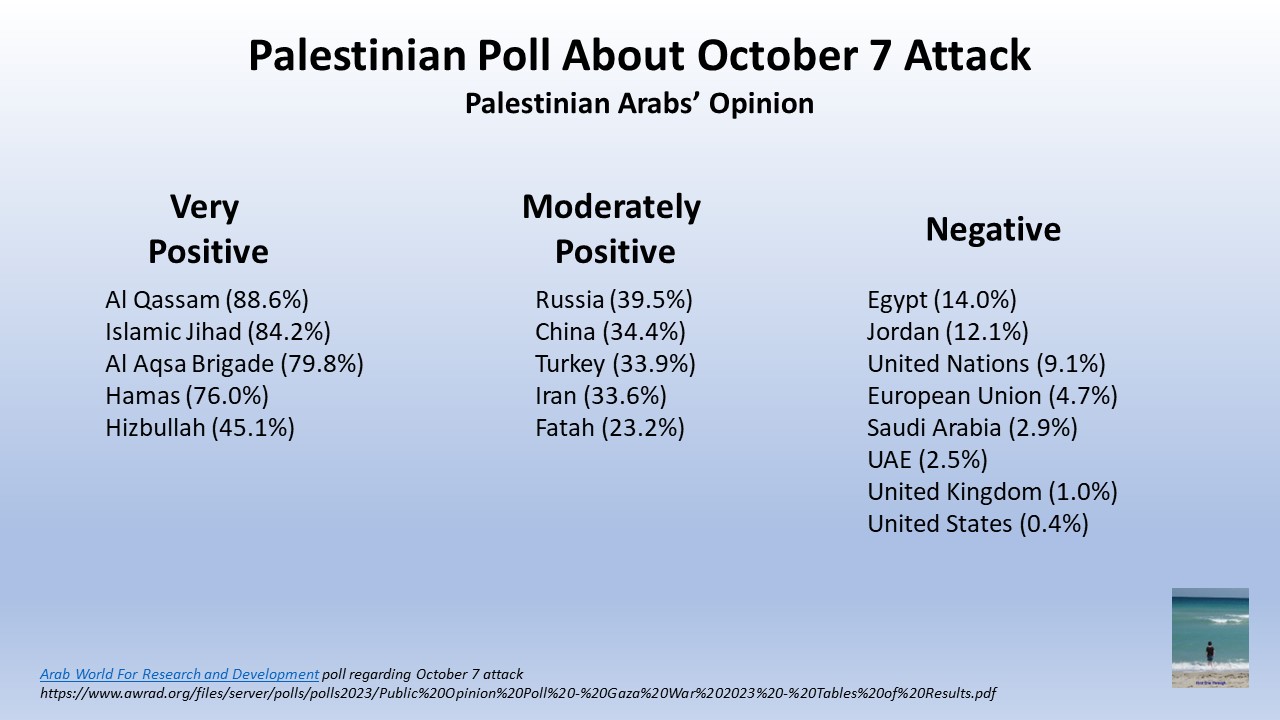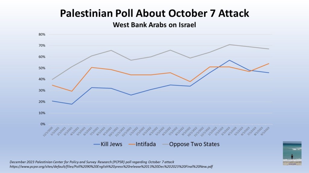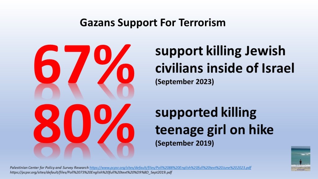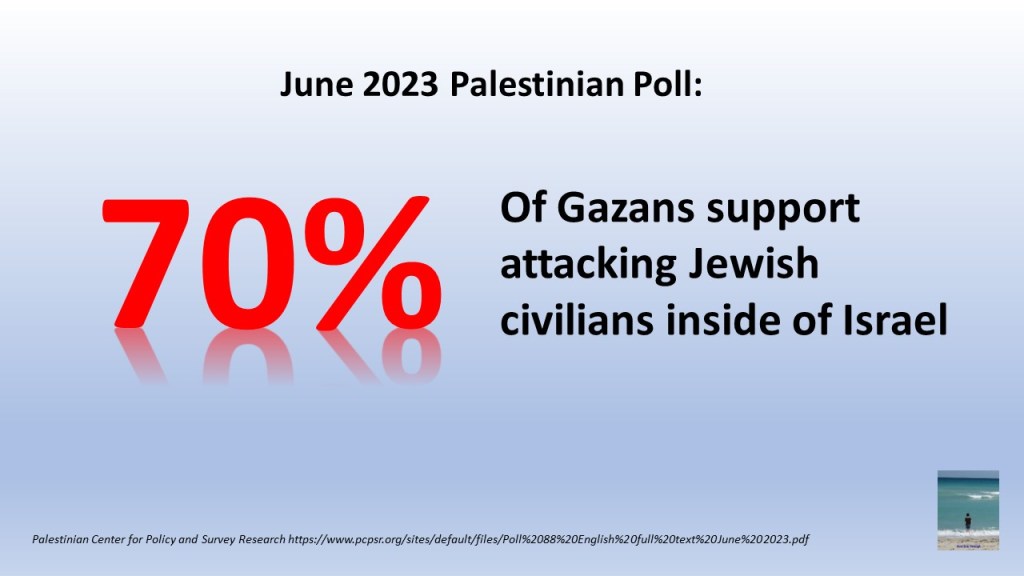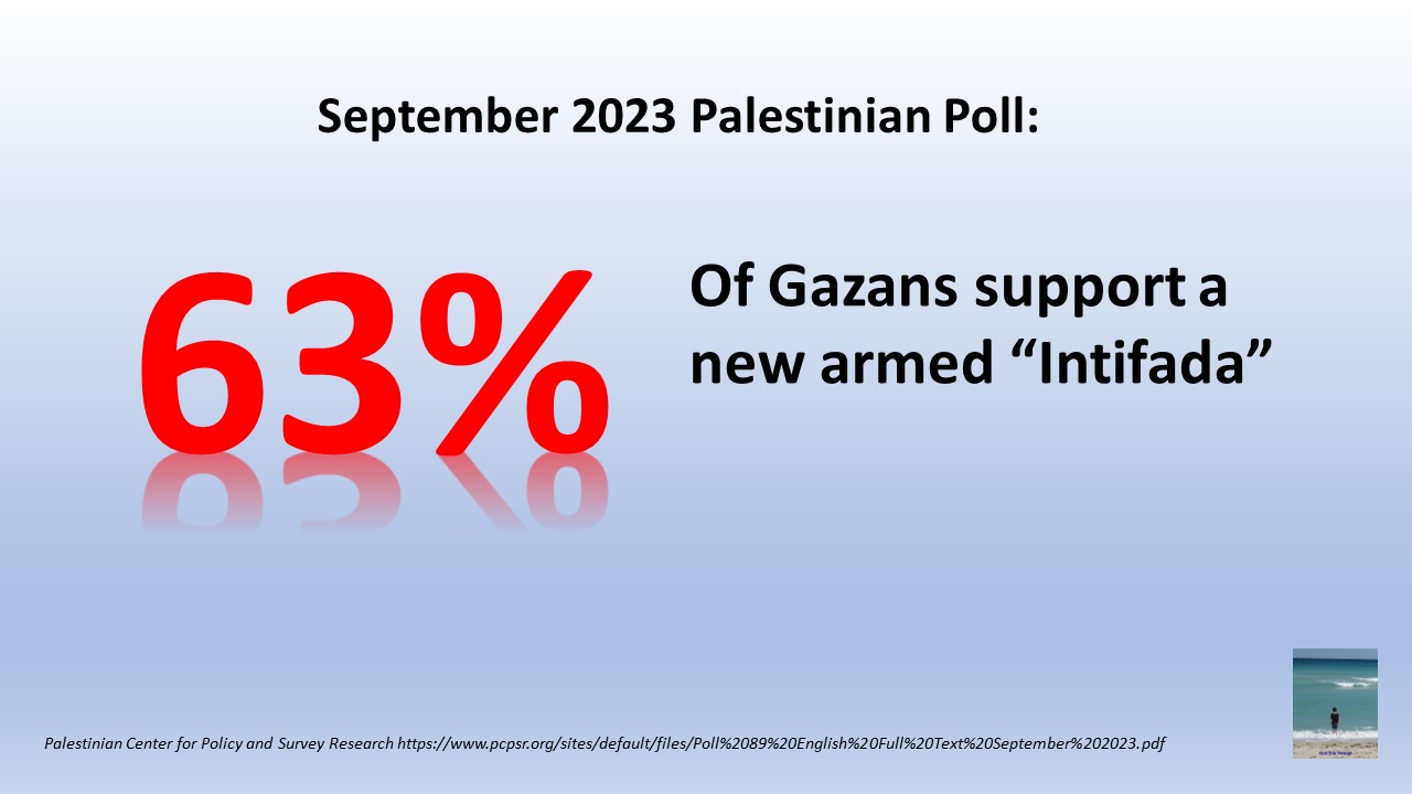 The Palestinians prefer terror by a 2-to-1 margin, to get rid of the “occupation.”