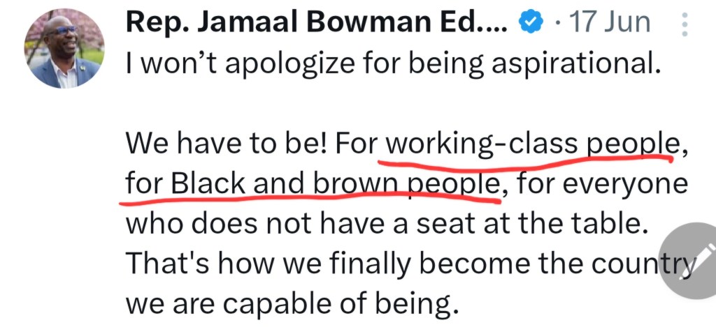 Bowman has a long history of race-baiting, lying and being a hypocrite. He is one of two sitting members of congress to be censured by a bipartisan majority. He mocked the rape of Jewish women in Israel to a cheering crowd.