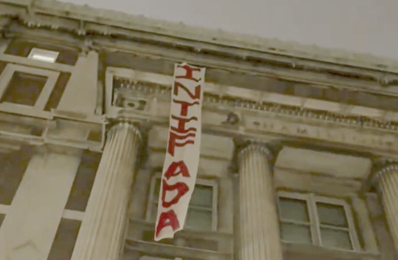 Banner hung at Columbia University’s Hamilton Hall supporting “intifada,” violence against Jewish civilians