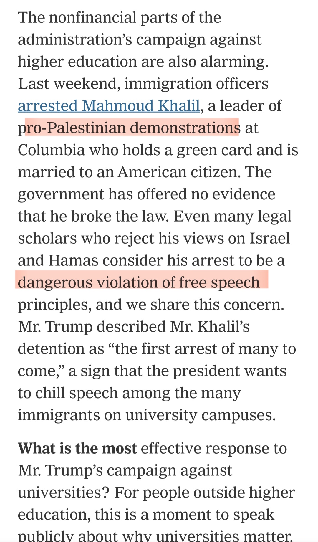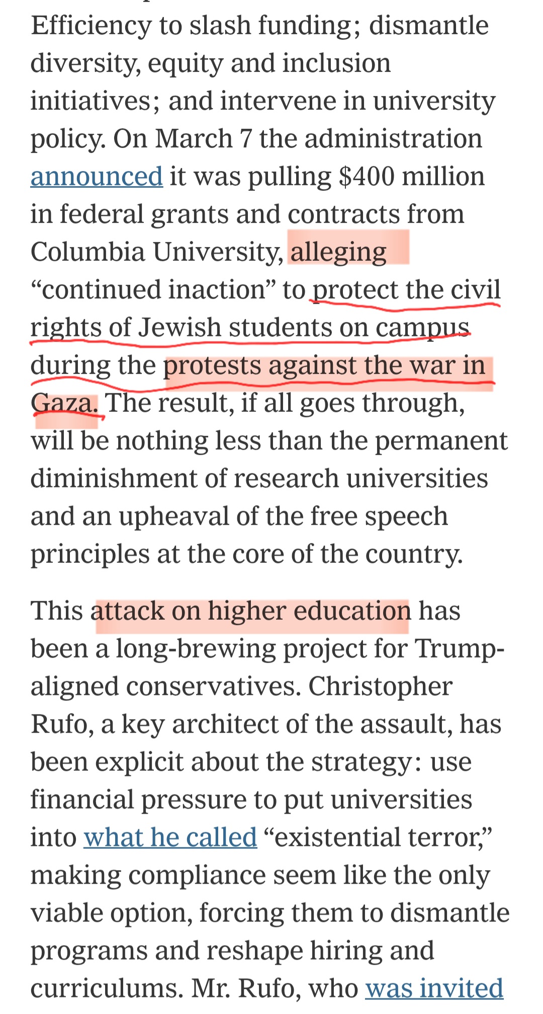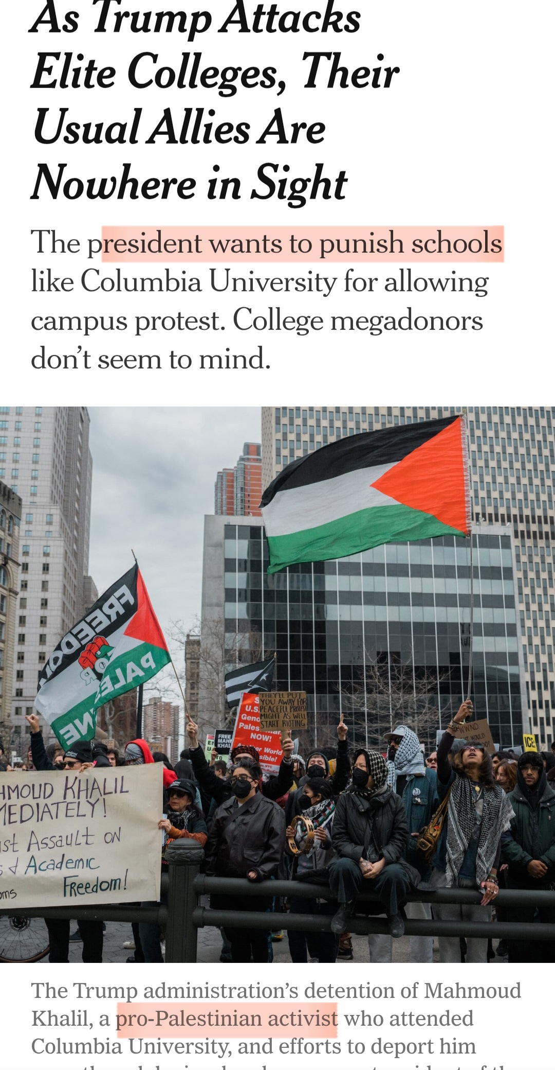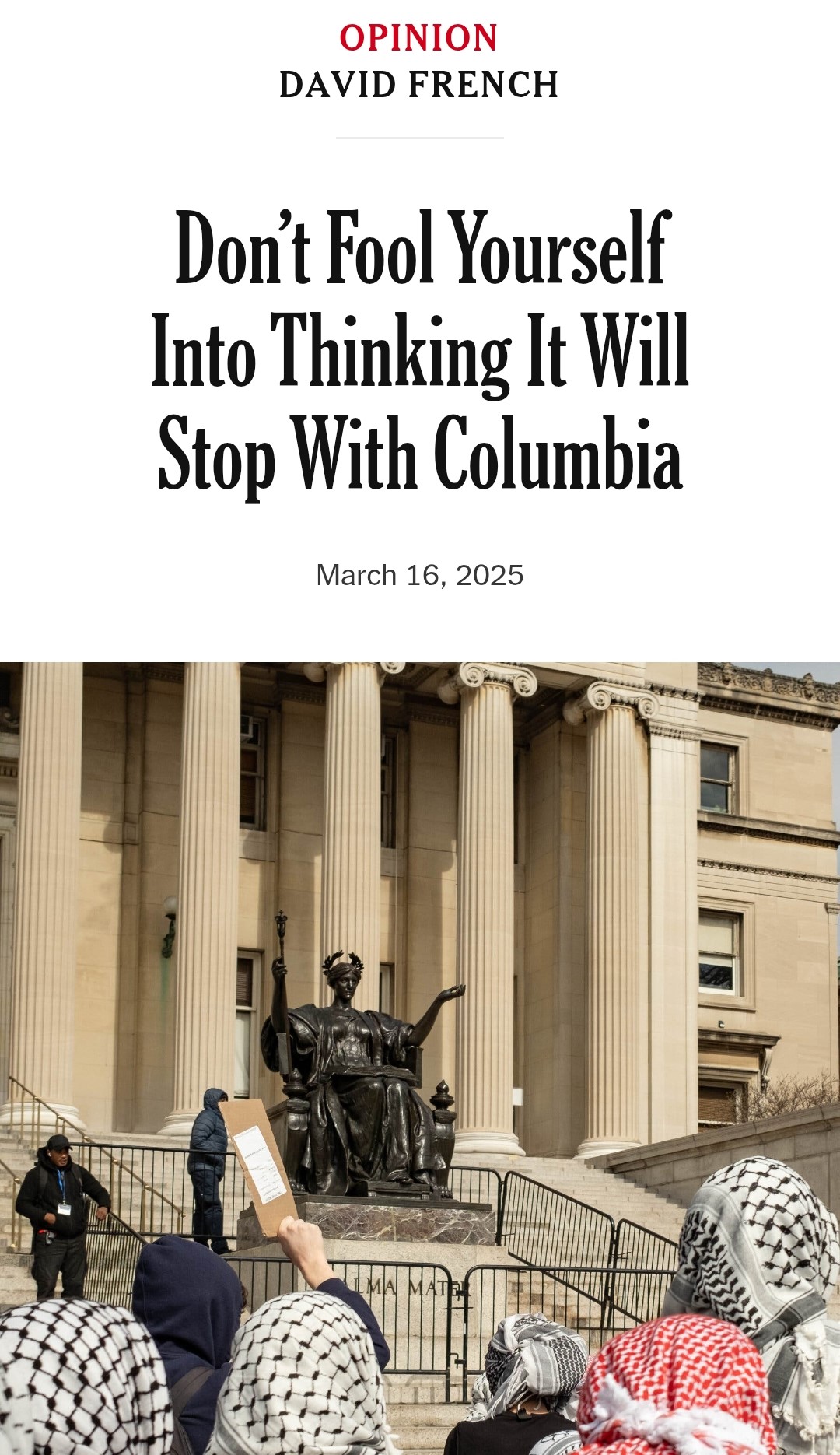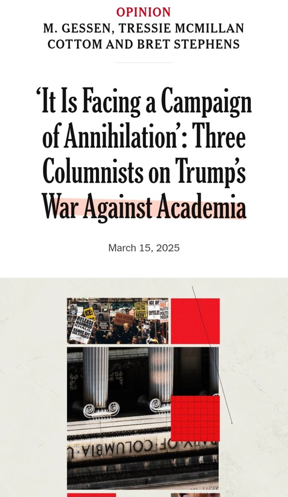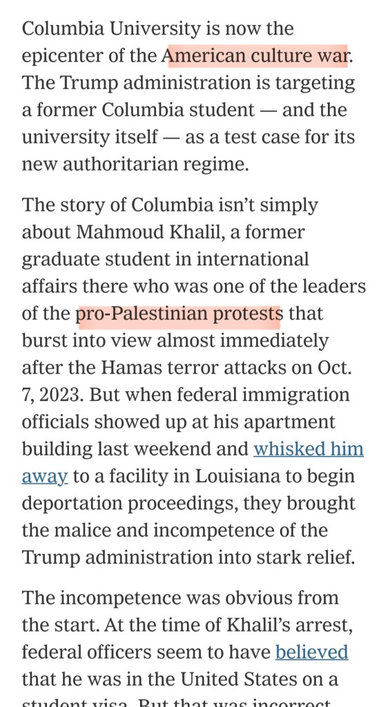 The New York Times article on March 20, 2025 misdirecting readers about the Trump administration’s letter to Columbia University