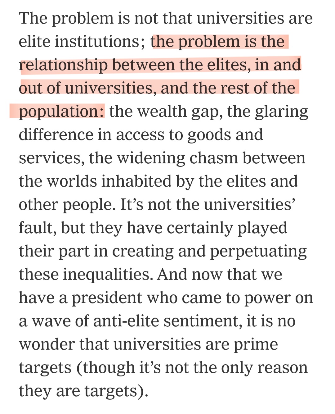 She may think she’s deciding between constituents, aligning with either students, faculty, alumni, trustees, or the government with competing desires. She may be debating who will provide the most funding or people over the long term. Or perhaps she just wants to test the parameters of “intellectual sprawl,” tickling the edges of harassment and intimidation.