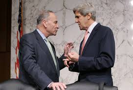 Sen. Chuck Schumer and Secretary of State John Kerry discuss the Iranian nuclear deal in 2015
