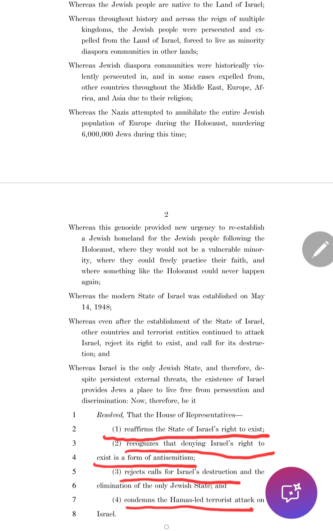 For starters, H.Res 888 was a bipartisan resolution sponsored by many Jews and non-Jews. It had four key components in addressing Israel’s defensive war against Hamas which committed a brutal massacre of civilians in Israel and has promised to repeat the atrocities again and again. The four statements were that: Israel has a right to exist; denying such right is a form of antisemitism; rejects calls for Israel’s destruction; and condemns Hamas’s attack.