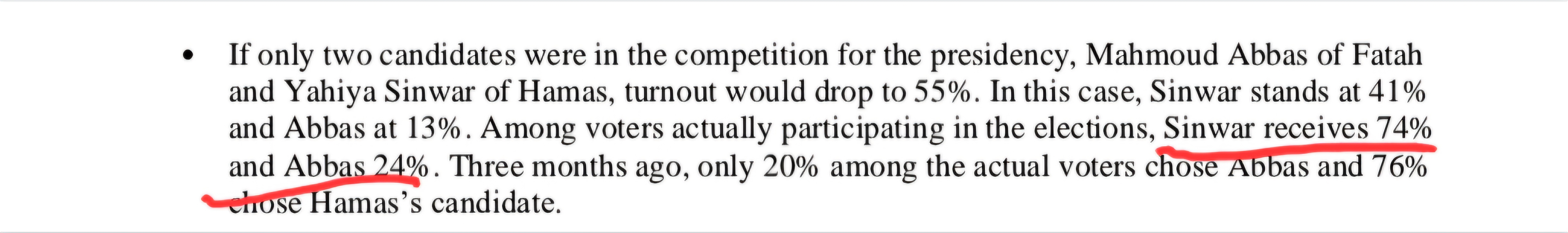 Because when Palestinians were first allowed to govern themselves, they told us exactly who they were politically: