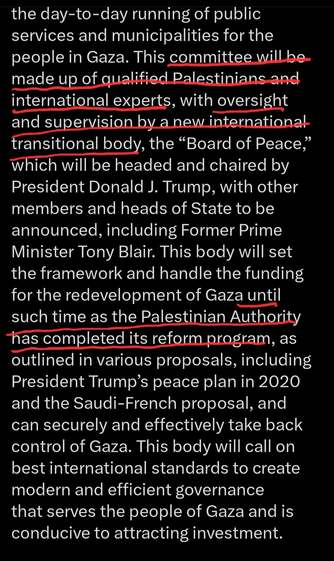 Trump’s plan – as endorsed by Qatar, Jordan, the United Arab Emirates, Indonesia, Pakistan, Türkiye, Saudi Arabia, and Egypt – states clearly that a possible Palestinian State will come as a BYPRODUCT of deradicalization and peace, not in order to CREATE the forum for coexistence as offered by France and the United Kingdom. All of which may or may not happen, and most likely after Abbas is long gone.