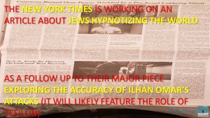 The New York Times decided to write a large article about AIPAC because of Omar’s comments attacking the pro-Israel lobby in an article called “Ilhan Omar’s Criticism Raises the Question: Is AIPAC Too Powerful?” on March 4, 2019. Perhaps the Times will soon do a follow up article asking whether Jews really know how to ‘hypnotize‘ the world the way that Omar also claimed.