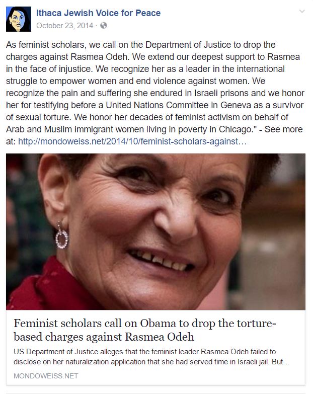 JVP post supporting convicted terrorist Rasmeah Odeh