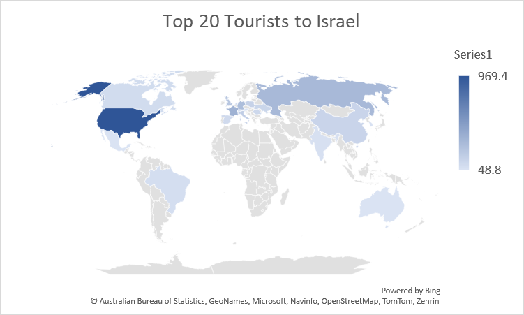 These pages have reviewed that Christians love visiting Israel (a majority 56% of tourists in 2018!) and that Muslims barely come despite the supposed significance of the al Aqsa Mosque in Jerusalem. Here we will dive a bit deeper into the countries that make up tourists to Israel.