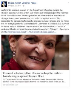 JVP post supporting convicted terrorist Rasmeah Odeh