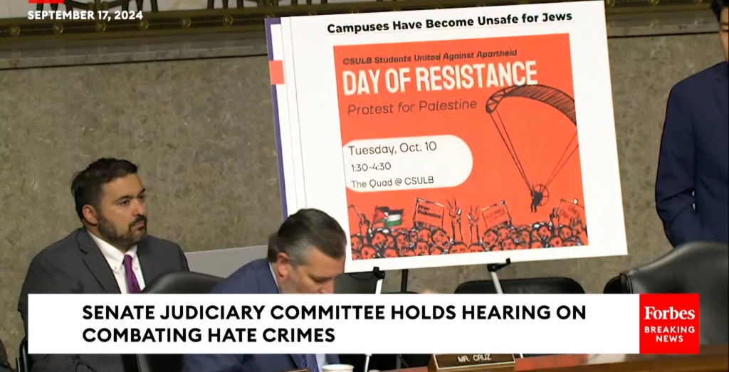Cruz demanded that more attention be paid to Jew-hatred, a vile form of hatred that has led to genocide. He called college campuses vile “incubators of hatred of Jews,” and went on to list comments by students and student organizations that threatened Jews, including a Jewish student being told to “go back to the gas chambers.”
